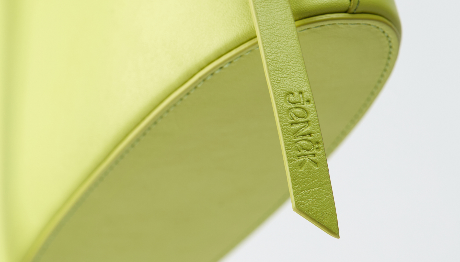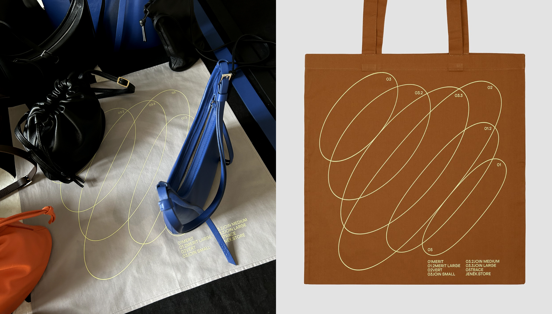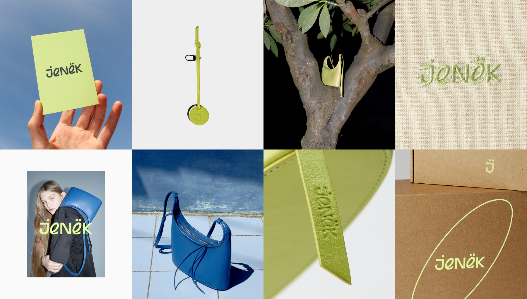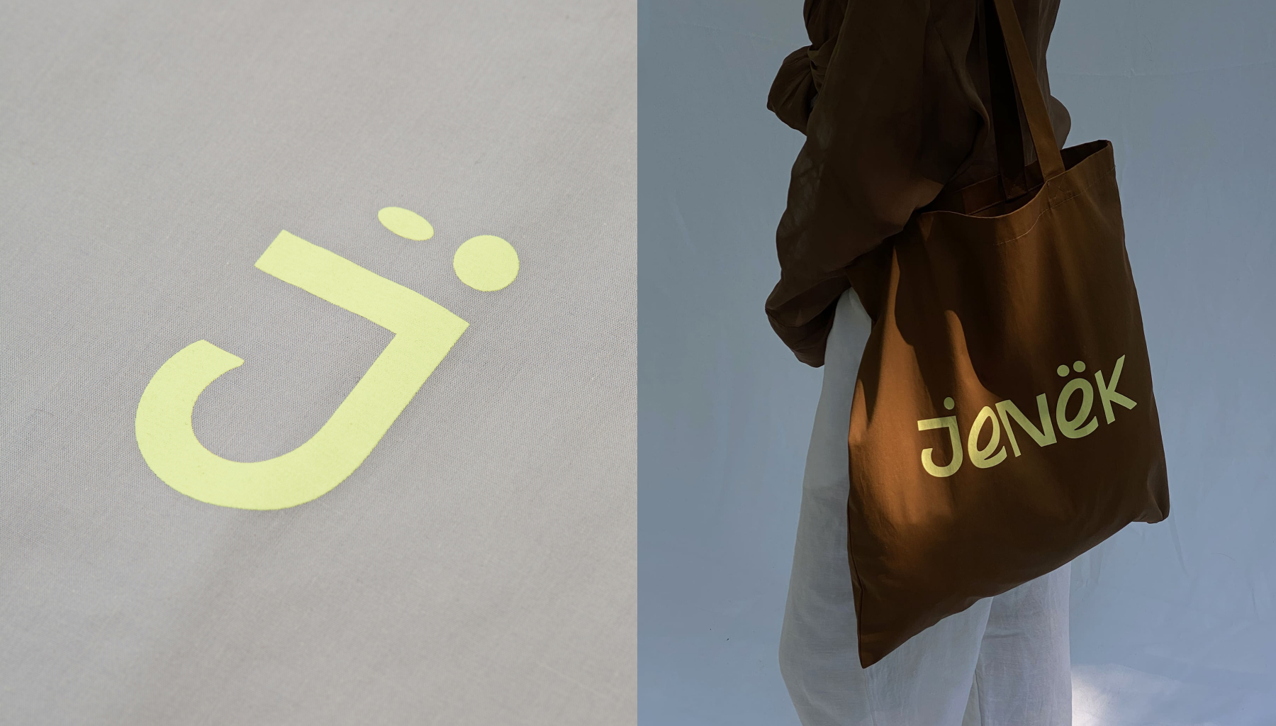 Важной составляющей нового логотипа стал эллипс, отсылающий к узнаваемой форме дна сумок JENЁK. Игривые гласные с вписанными в них эллипсами подчеркивают подвижность и разносторонность как самой марки, так и ее клиенток, которые способны сочетать легкость с элегантностью — за последнее в айдентике отвечают более строгие, статичные согласные. У логотипа есть и сокращённая версия — лигатура J и Ё напоминающая рожицу.