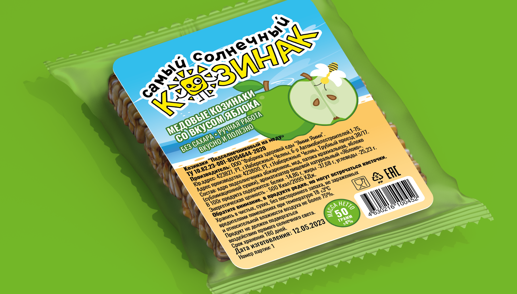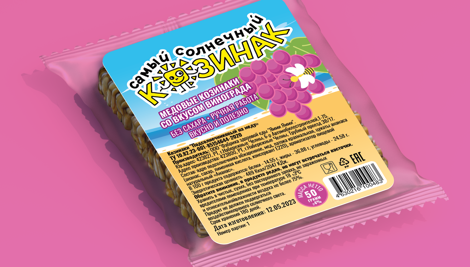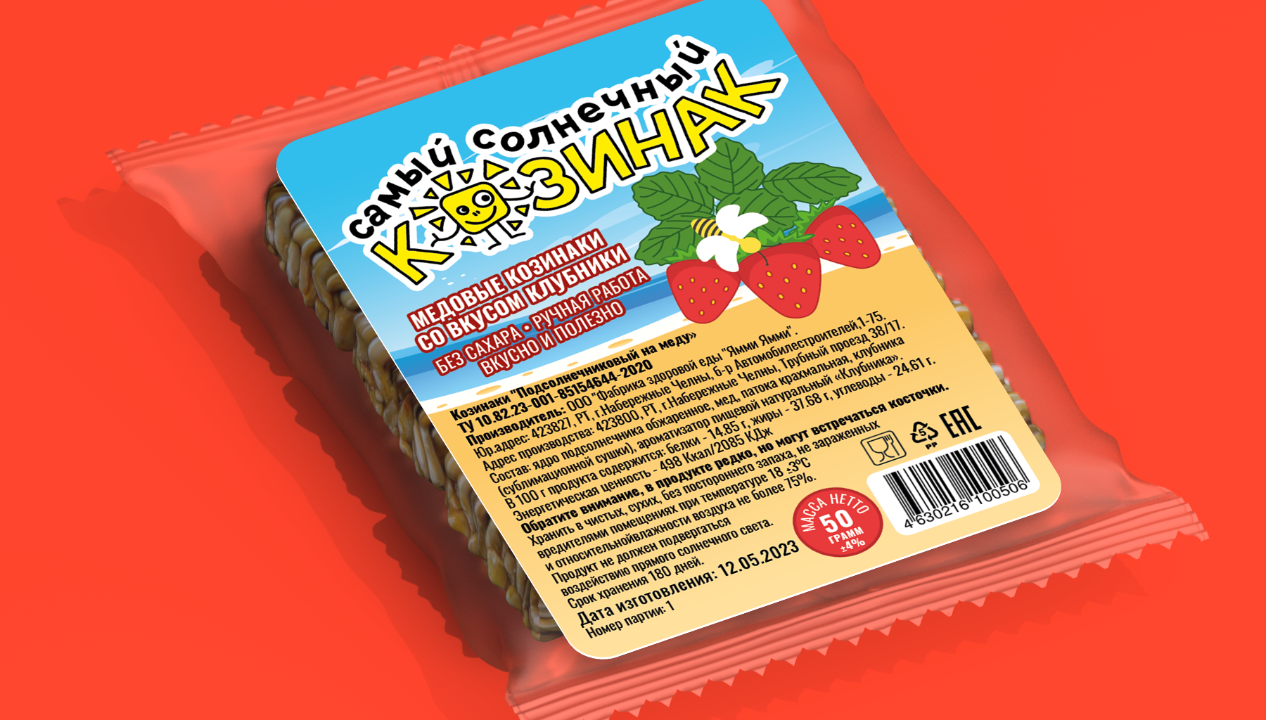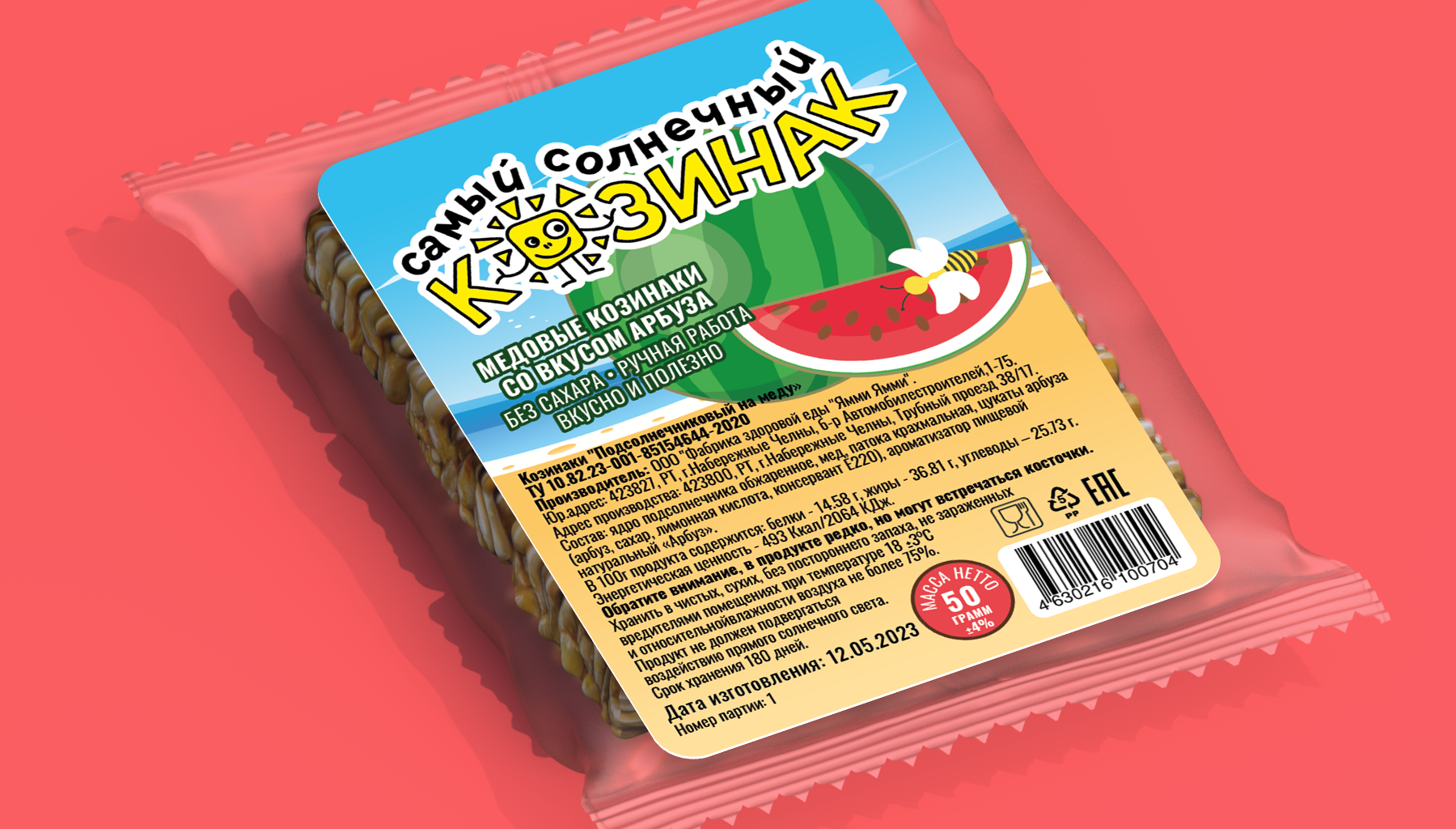 Ассортимент козинаков состоит из шести вкусов: арбуз, яблоко, клубника, ананас, виноград, апельсин. В составе вместо привычной карамели – мёд. Ну и конечно же – семена подсолнуха.