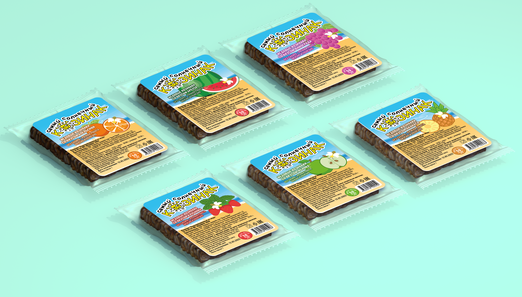 Было принято решение использовать на этикетке яркие цвета и детскую стилистику. Для логотипа был разработан персонаж – солнце-монстрик.