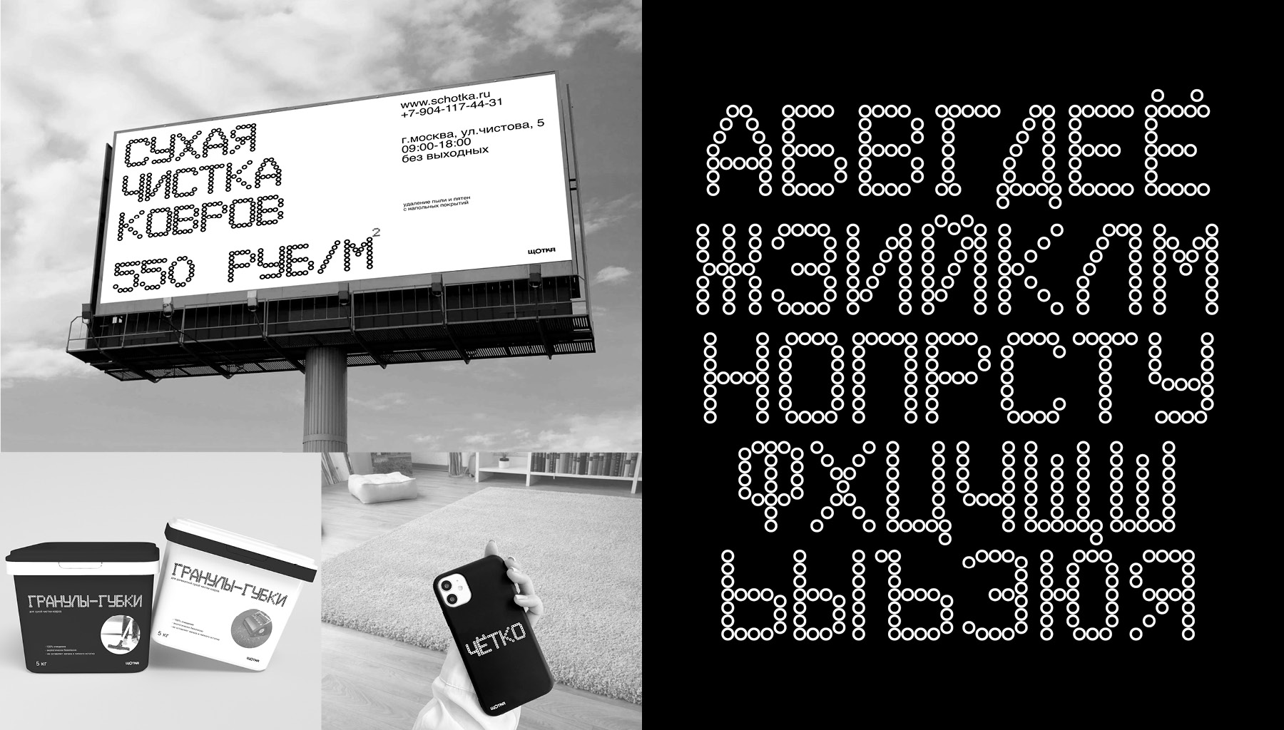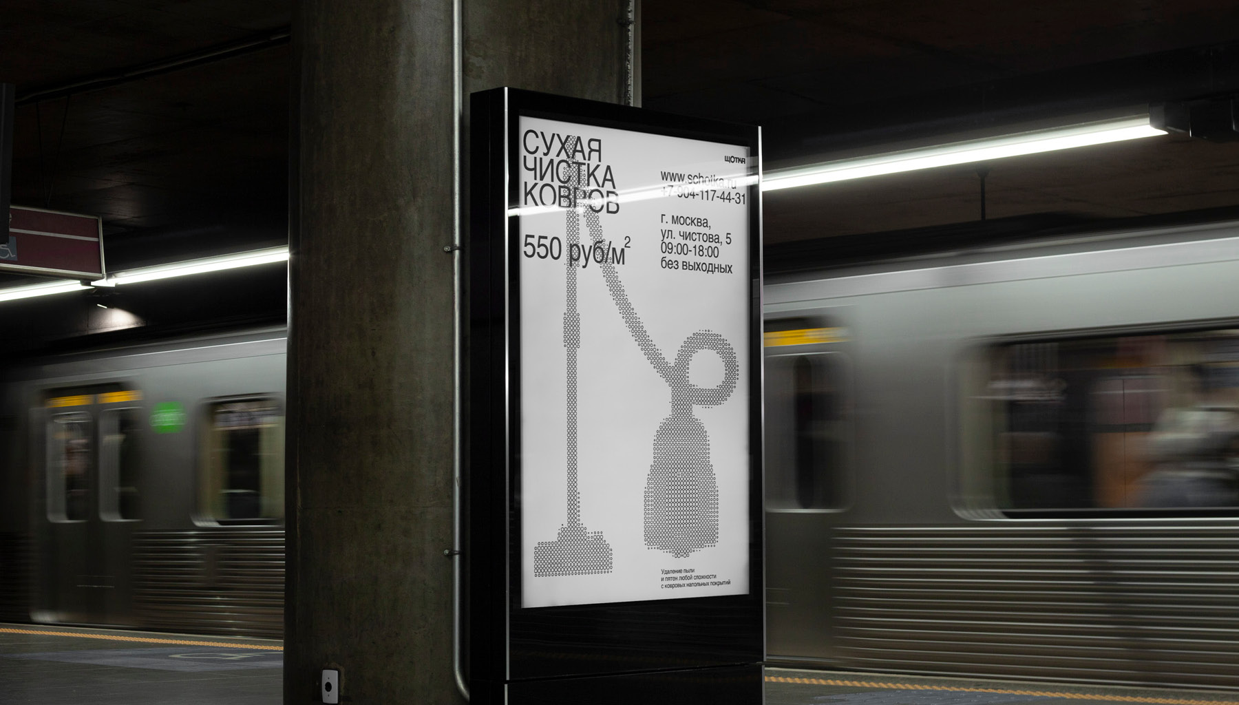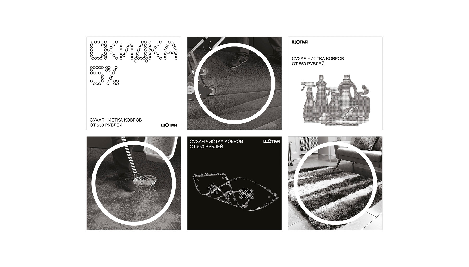 ЩОТКА — концептуальный проект бренд айдентики компании по сухой чистке ковров, расположенной в Москве. Компания осуществляет чистку специальными гранулами-губками в виде порошка, которые удаляются с поверхности щёточными пылесосами. «ЩОТКА» не специализируется на мокрой чистке, а деликатно избавляет ковёр от загрязнений и пыли, что дарит ковровому покрытию долговечность, не травмирует ворс и не приносит вреда экологии. Сутью бренда является сухая чистка ковров как инновационный способ поддержания порядка в доме, что отражает потребности целевой аудитории — молодых людей в возрасте от 25 до 40 лет.