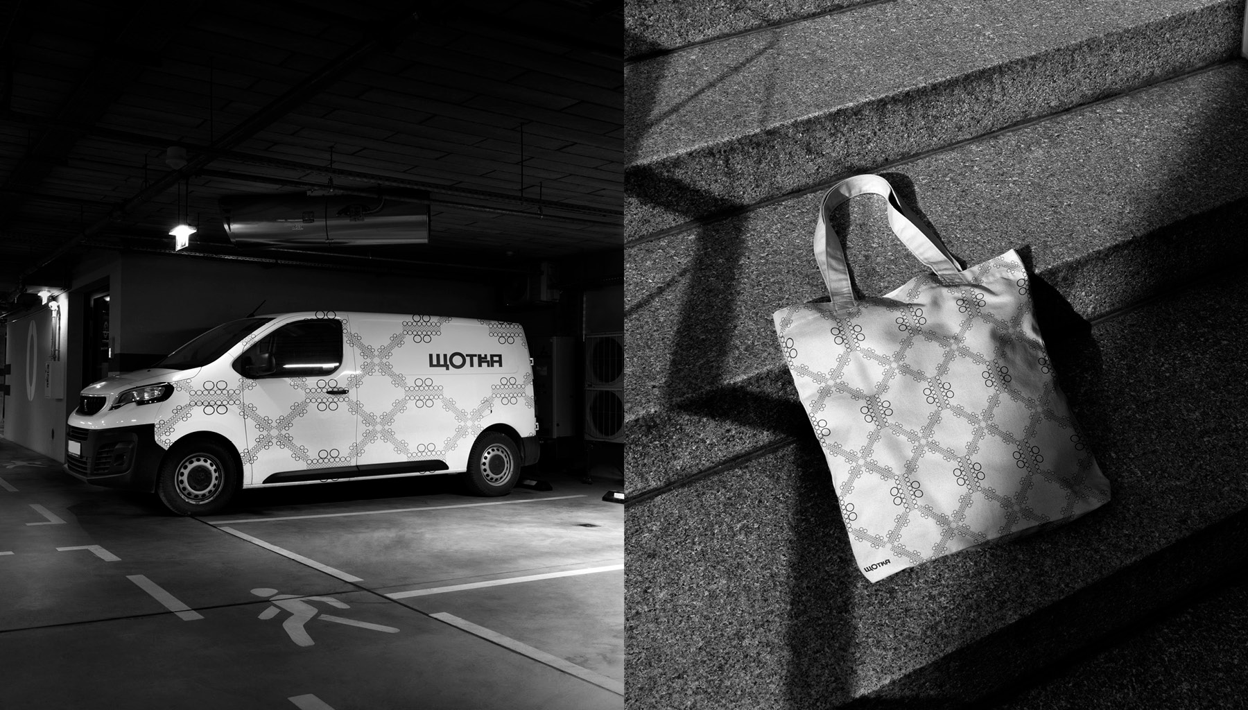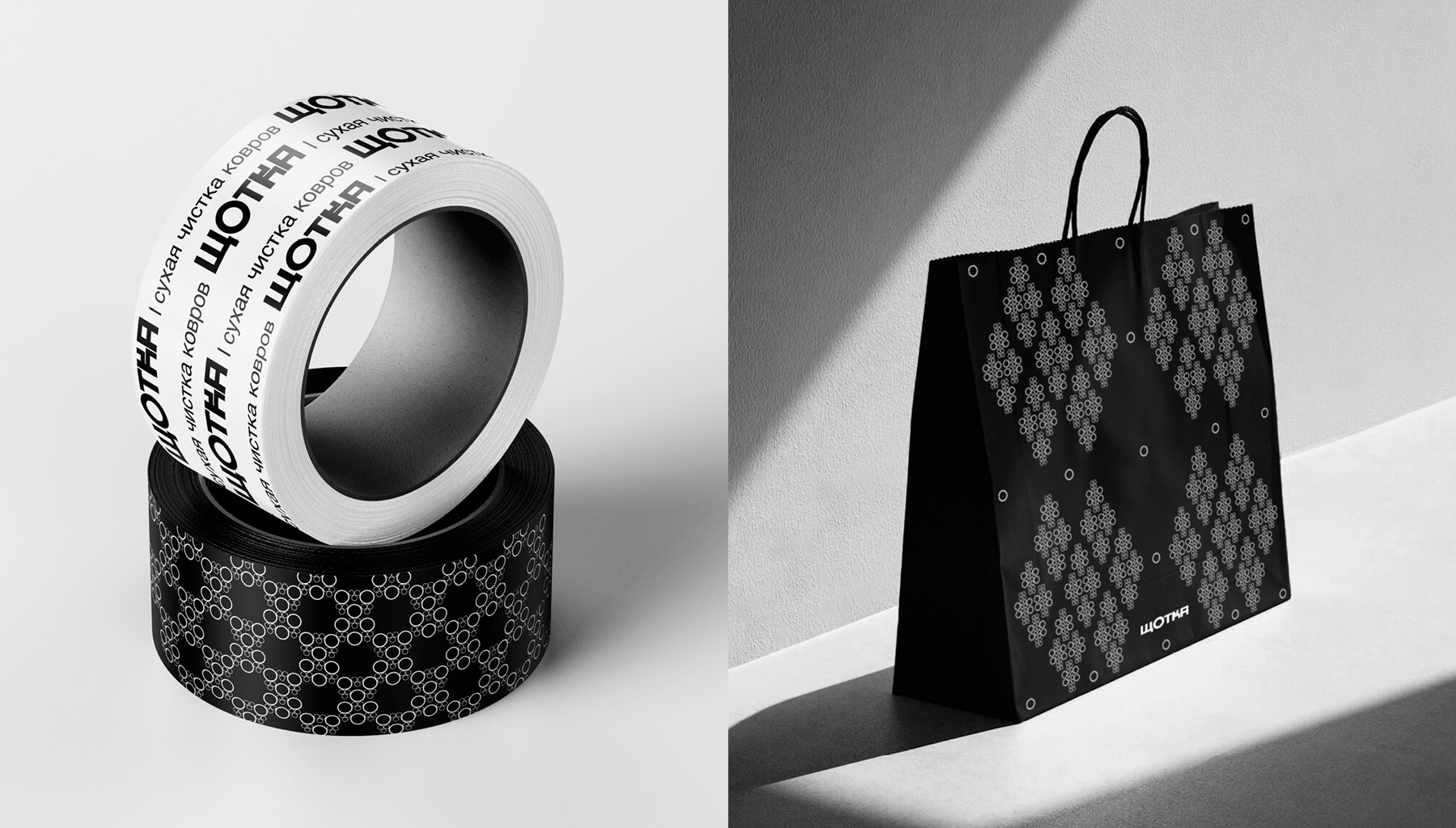 Концепция дизайна основана на символе сухой чистки текстильных изделий, которым является окружность. Чистота и лаконичность этого знака с точностью отражает ценности бренда. Минималистичность отражена и в цветовой палитре проекта: белый и чёрный цвета были выбраны для яркой демонстрации контраста чистоты и загрязнений. Из окружностей создан фирменный шрифт. Также из знака сухой чистки собраны ковровые узоры и инструменты, которые необходимы во время уборки. Важно отметить, что данный символ лёг в основу названия компании, именно поэтому привычная буква «ё» в русском слове «щётка» заменена на «о». Логотип отдельно и в сочетании с фирменным узором создают узнаваемость бренда и передают «ковровый» колорит.