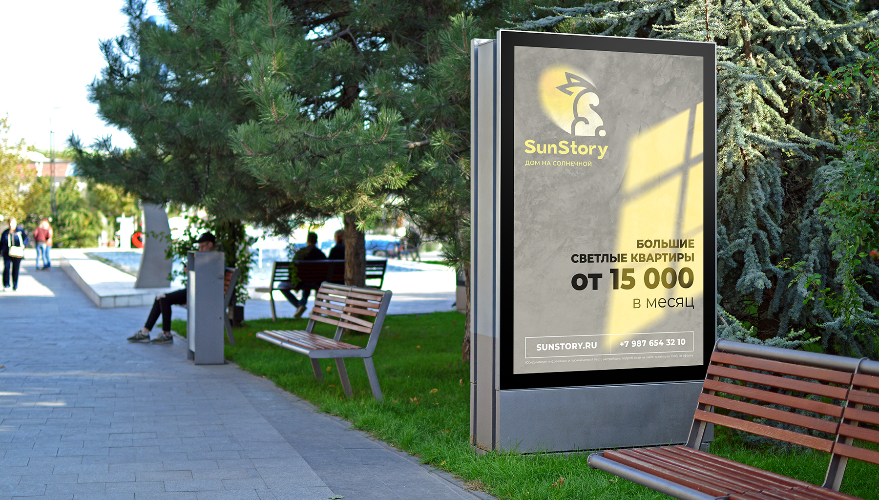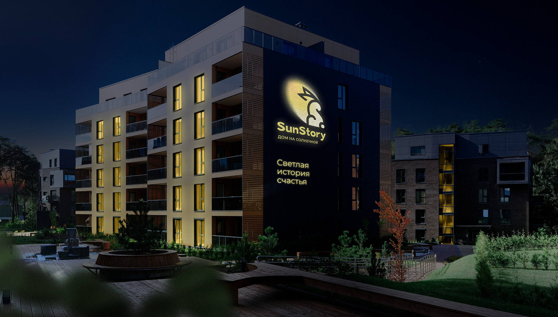 Это тот самый проект когда все сошлось: идея, место, цели и средства. Главное преимущество проекта - это место расположения жилого комплекса на улице Солнечной. Локация дома продиктовала название для проекта, а концепция игры солнечного света и тени, в качестве основного визуального средства, стала самым красивым и логичным продолжением проекта.
