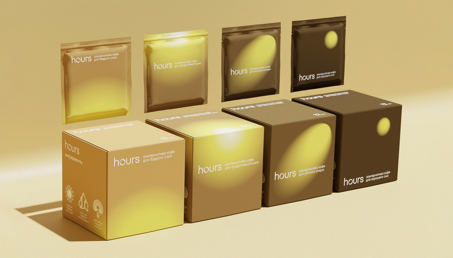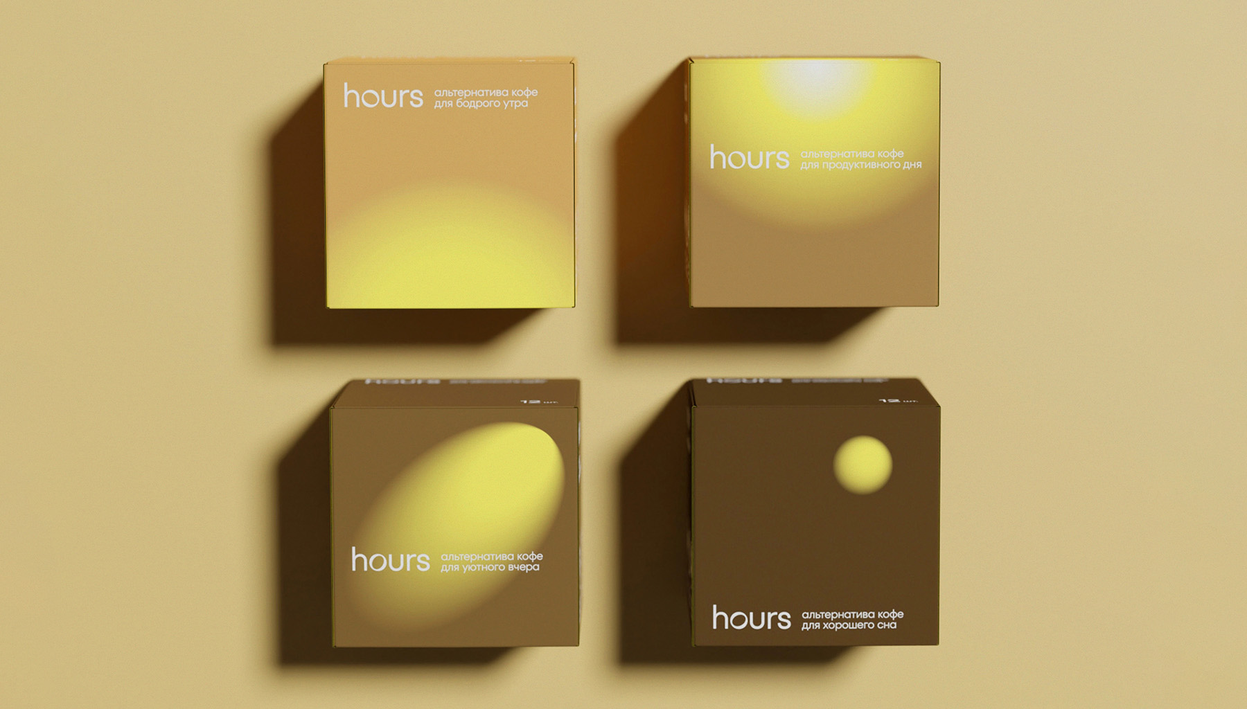 Основная идея серии упаковок — это освещение, меняющееся по ходу дня и влияющее на наше настроение так же, как и хороший напиток.