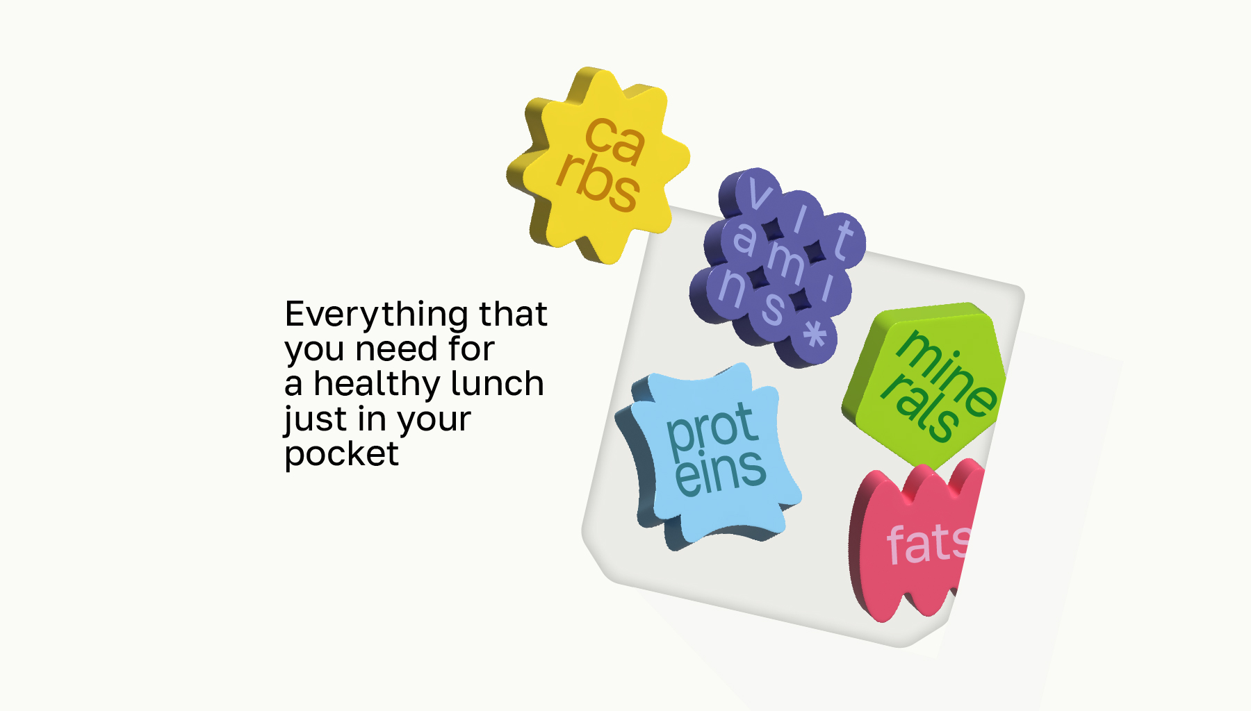 Концепция айдентики и упаковки для порошкообразного продукта, растворяемого в воде, который заменяет обычный прием пищи. Продукт содержит все вещества, поступающие с едой. В составе 39 необходимых для организма элементов, включая витамины и минералы. Продукт веганский и не содержит сои.