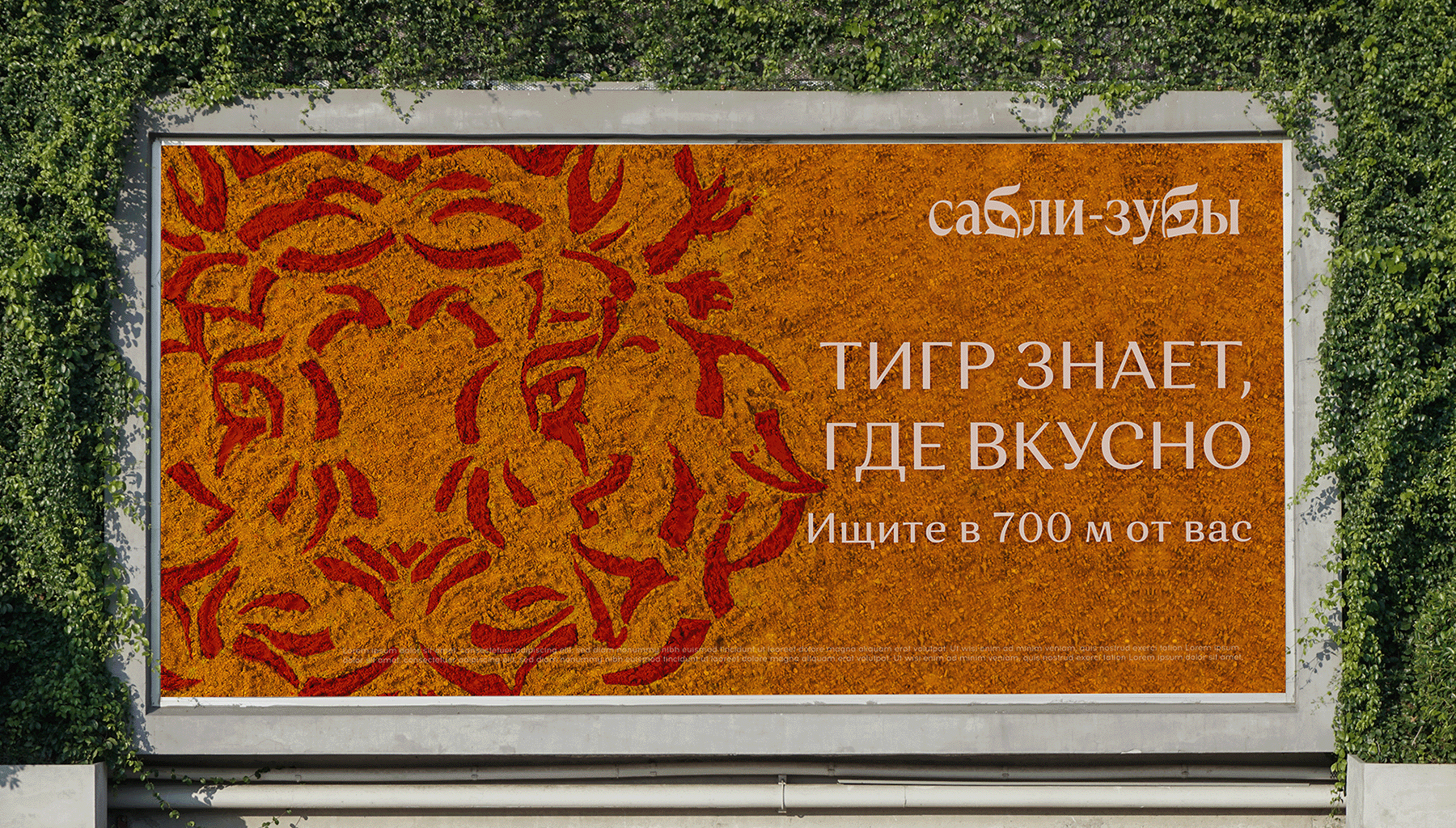 Вызовом в работе над этим проектом было объединение колорита Ближнего Востока, образа тигра и акцента на мясные блюда в меню. Здесь мало было нарисовать тигра. Вернее, мало — нарисовать его самим.