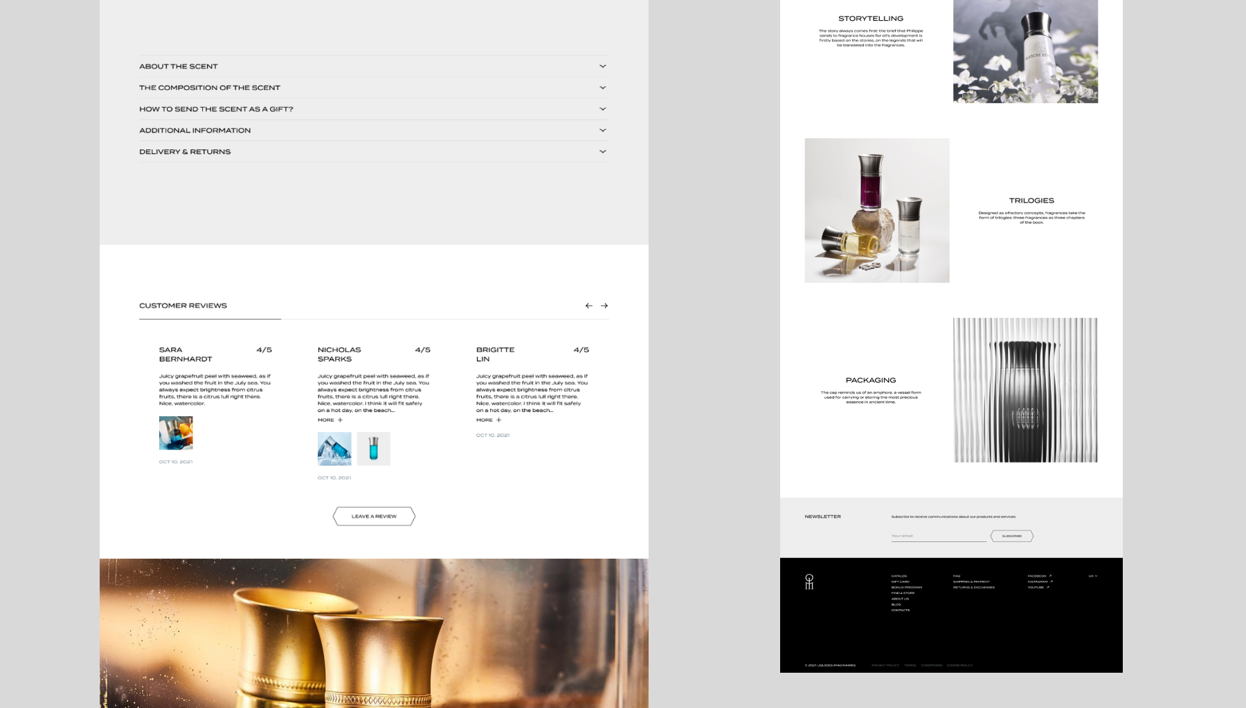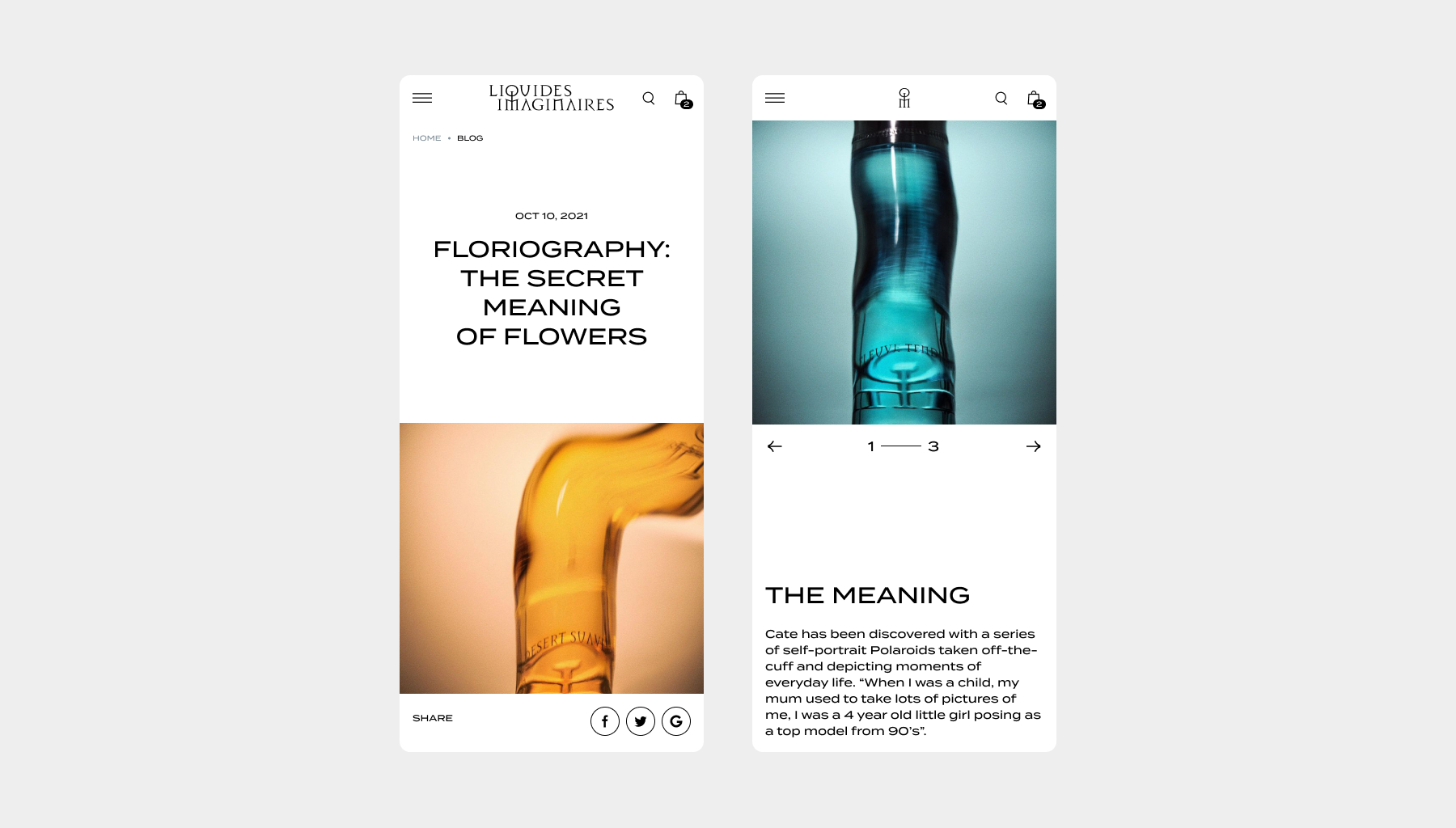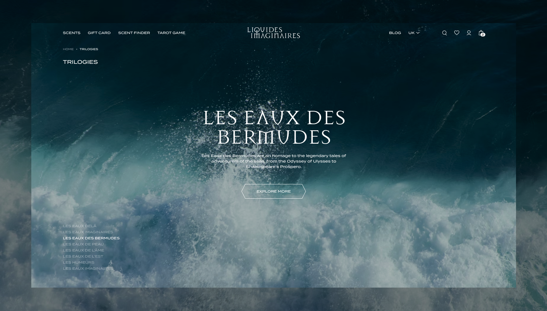 Каждый парфюм Liquides Imaginaires является частью тематической трилогии, со своей легендой и визуальной историей. Поэтому мы подошли к созданию этих страниц как к лонгриду, который через нарратив и образы из классического искусства раскрывает суть каждой трилогии.