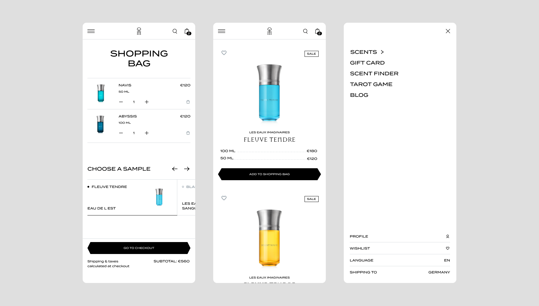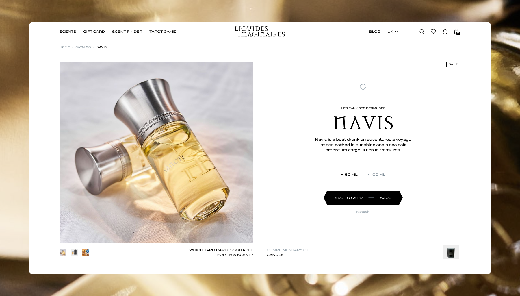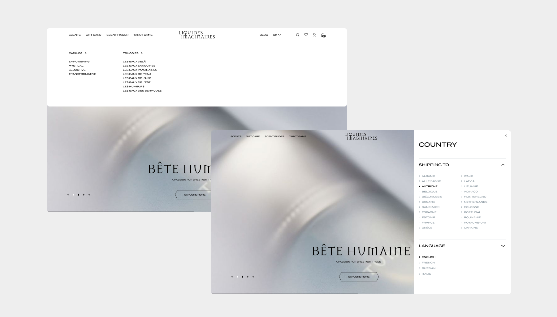 Liquides Imaginaires — французский парфюмерный бренд, пронизанный духом мистики и тайны. Команда обратилась к нам за интернет-магазином, который бы передал уникальный характер бренда и сделал опыт покупки в онлайне таким же атмосферным как в фирменных бутиках.