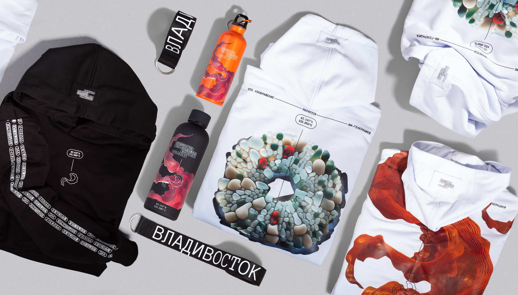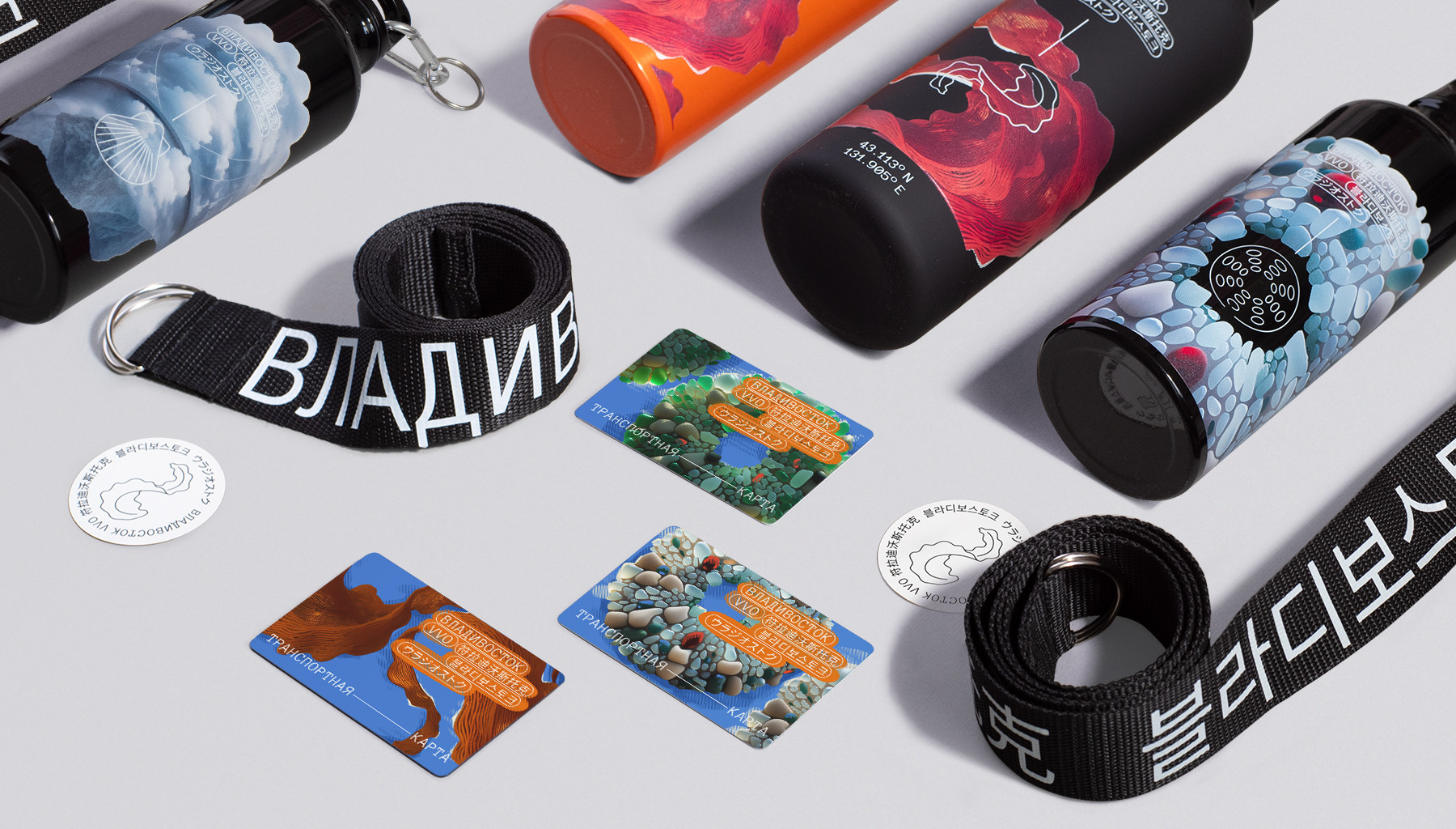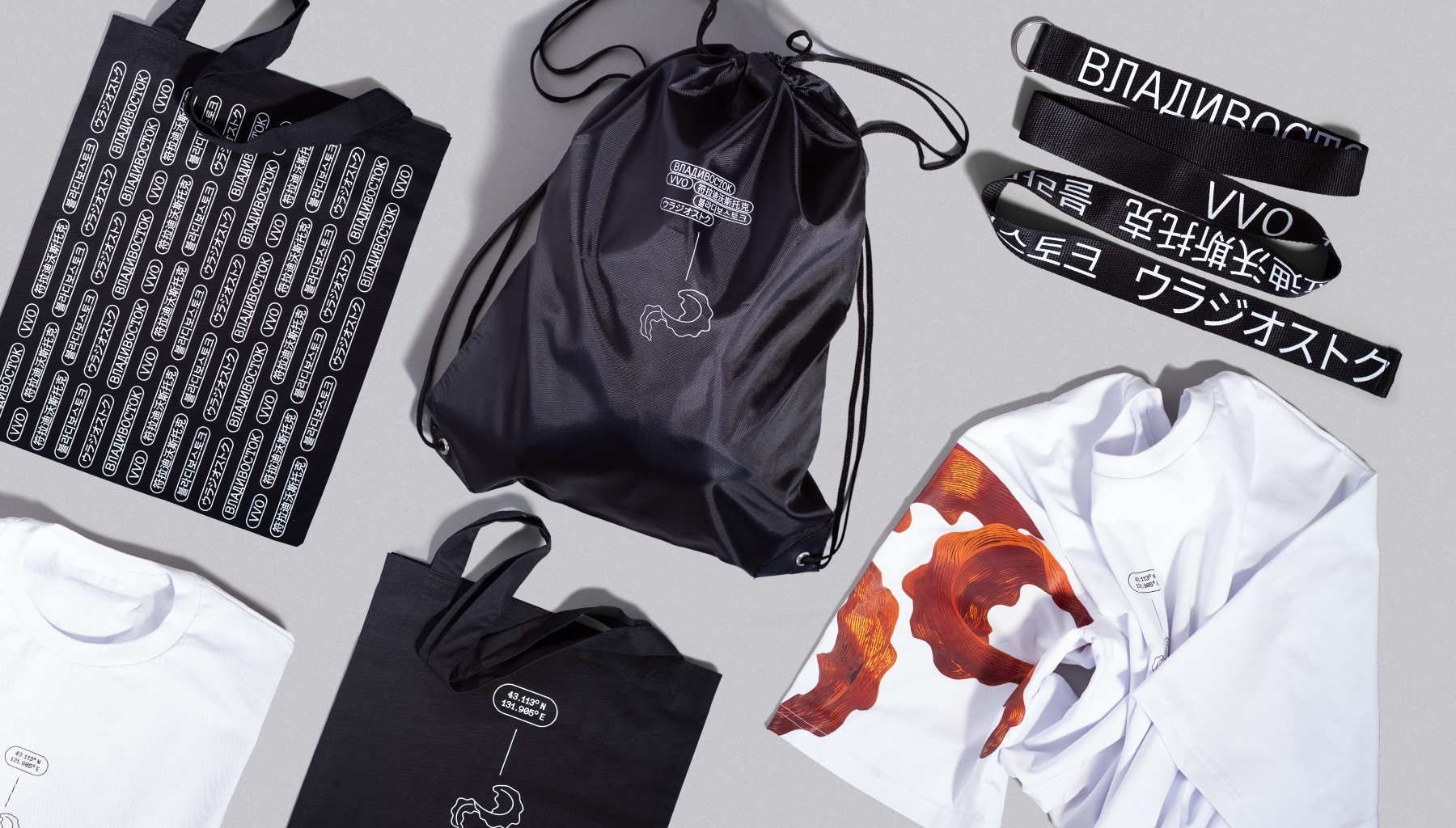 Мы разработали линейку мерча для Владивостока: несколько видов худи и футболок, шоперы, ремни, питьевые бутылки и термос, транспортные карты.