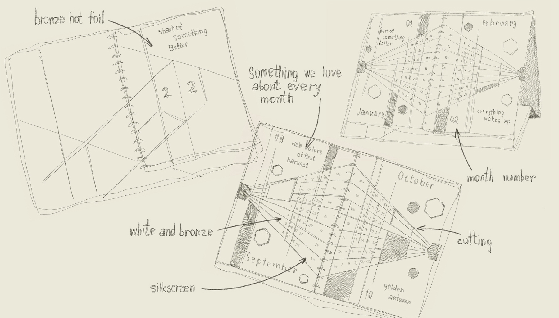 Календарь "Start of something better" посвящен бумаге и самому ценному в каждый момент года. Остановитесь и обратите внимание на важные мелочи. Каждый месяц, как и бумага, всегда особенный для нас. January - Start of something better, February -Everything wakes up, March - New life of nature , April - All hearts sing, May - How blooming everything , June - Barefoot on the grass, July - Bright summer peak, August - The most starry nights, September - Rich colors of first harvest, October - Golden autumn, November - Joy of fist snow, December - Magic Christmas.