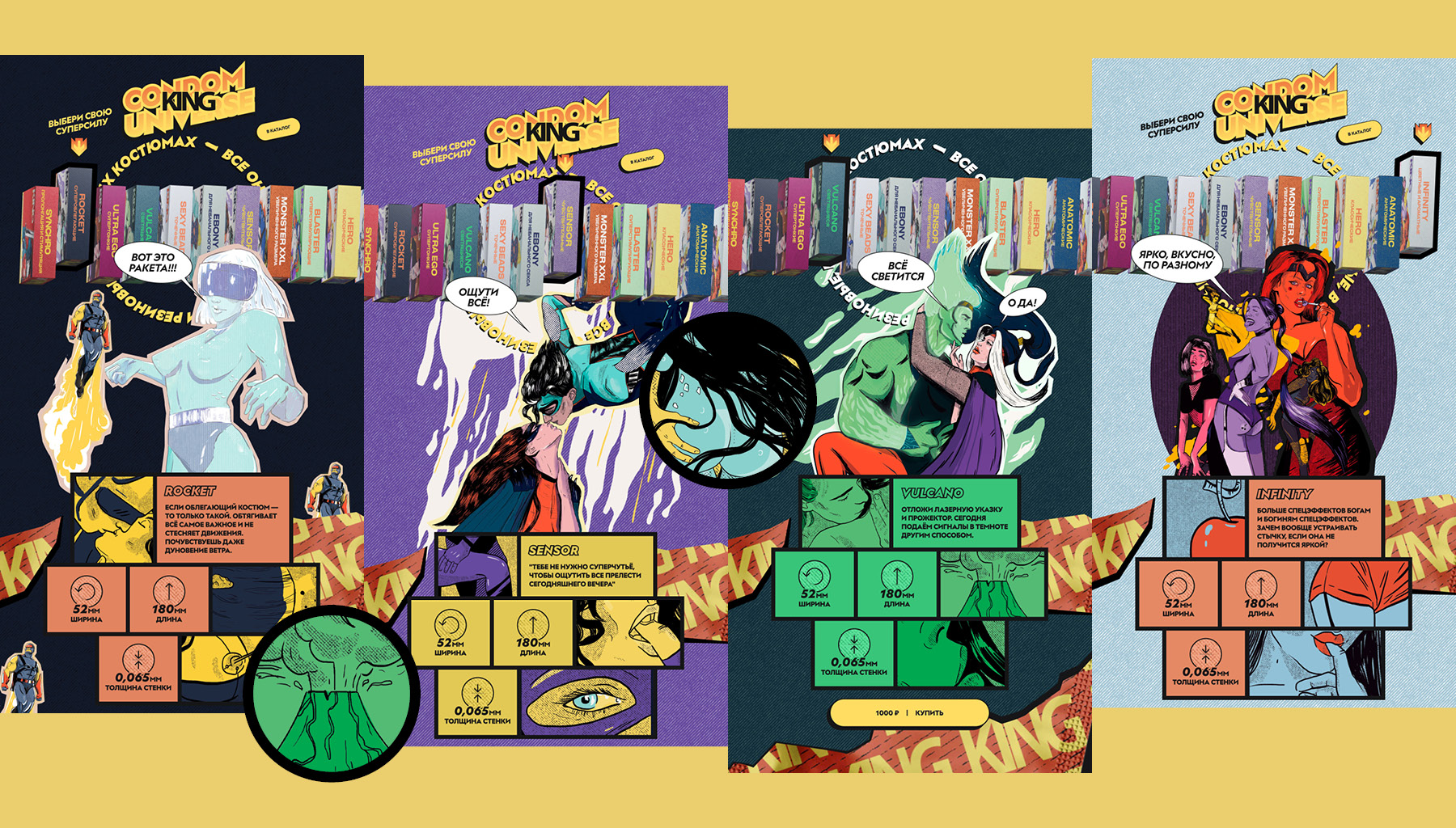 Для бренда презервативов «Кинг» был разработан дизайн онлайн-магазина, где каждый товар — это предложение обрести свою суперсилу.