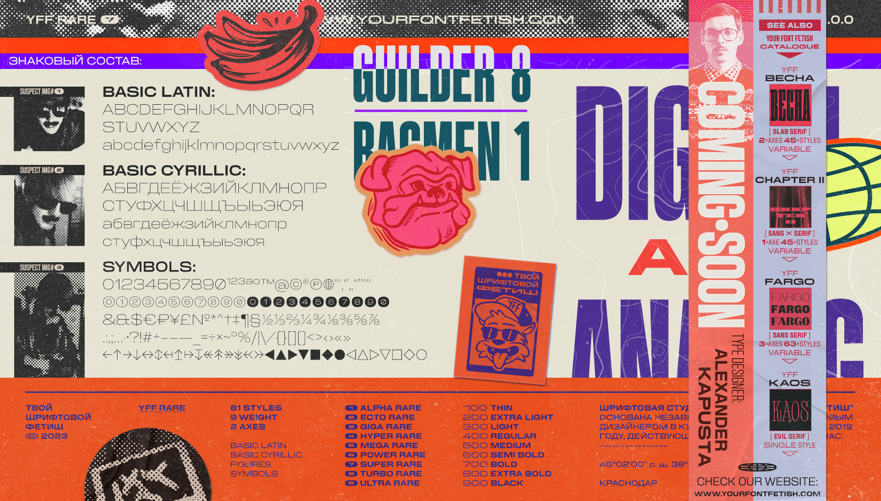 Шрифт, который был вдохновлен американскими гротесками конца 19 века и более современными гарнитурами в духе итальянских шрифтов середины 20го.