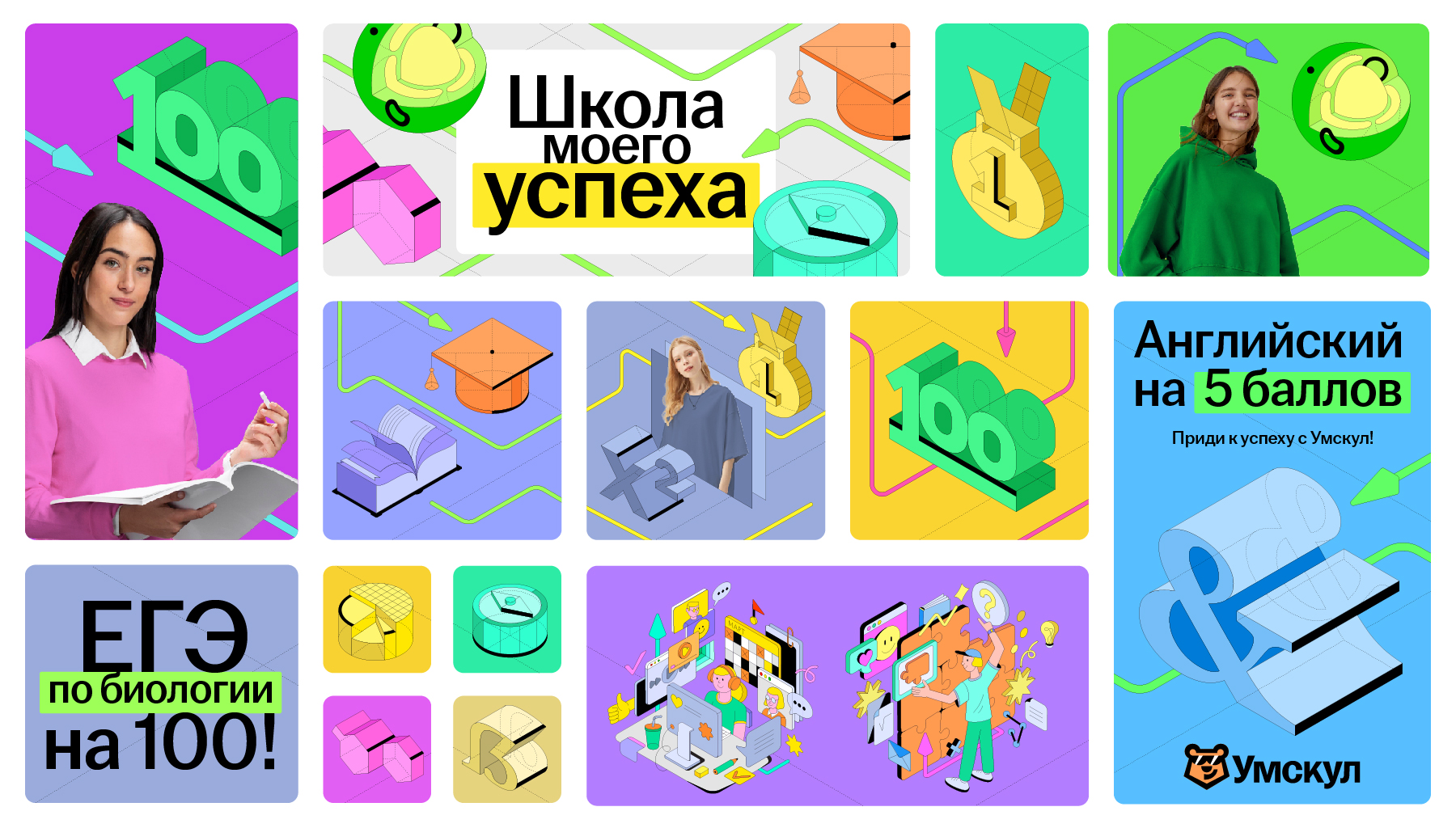 Умскул — иллюстрации для ребрендинга онлайн-школы подготовки к выпускным экзаменам