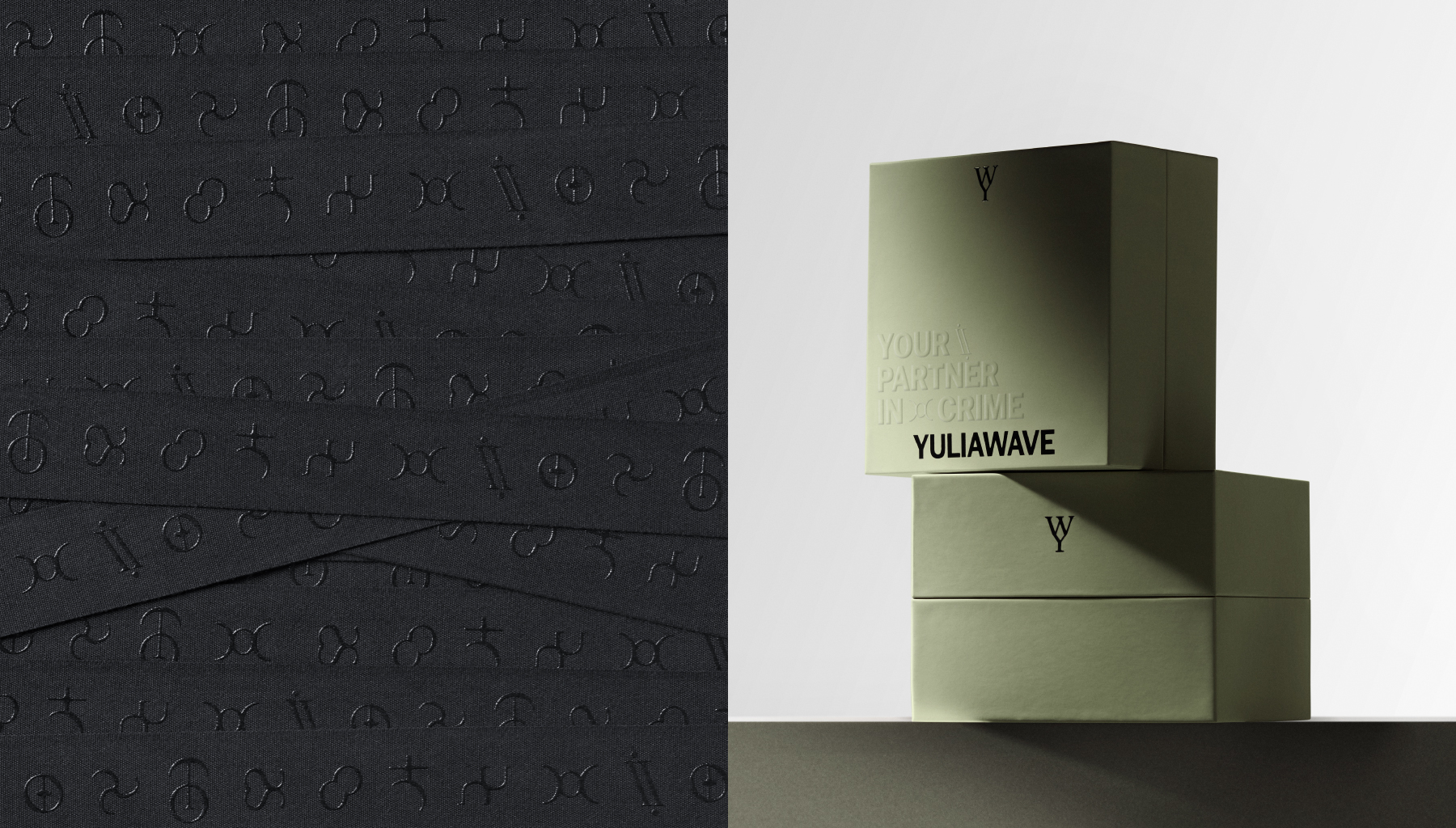 YULIAWAVE — это «partner in crime», безусловный сообщник в выражении себя такой, какая ты есть. Визуальный язык, как и одежда бренда основан на столкновении противоположностей и оксюморонах: сложная простота, грубая женственность, неповторимая повседневность. Графически мы передали это гармоничными компромиссами знаков, форм и цветов на границе свободы и монументальности, мистической первобытности и рациональной элегантности.
