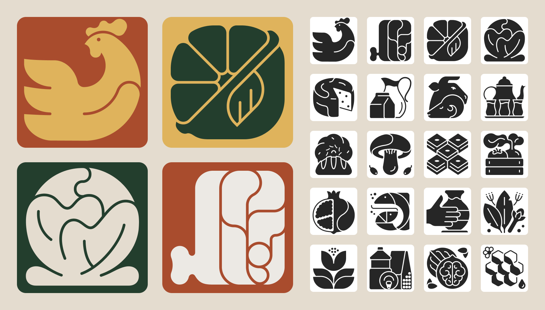 В новой айдентике – два набора иконок. Первый, для категорий товаров, отсылает к советской эстетике. Второй, для навигации по рынку, простой и современный. Также мы тщательно проработали стиль сумок, корзин, футболок, значков и других аксессуаров с символикой бренда.