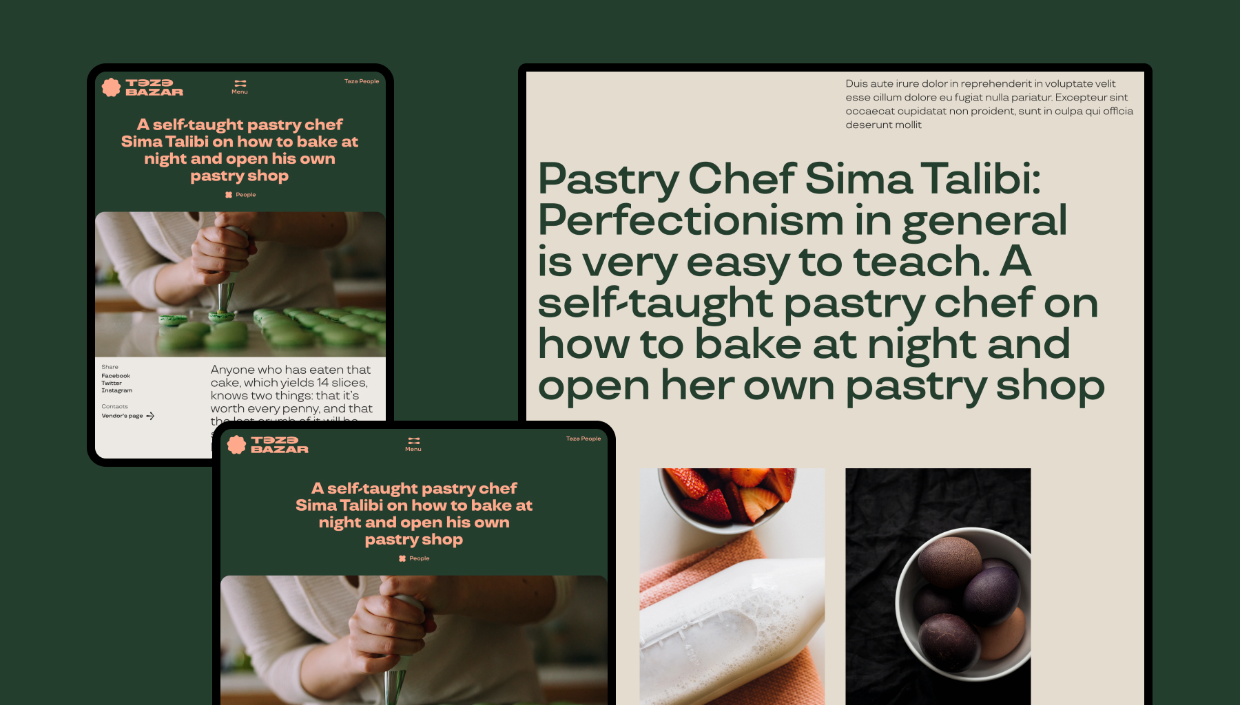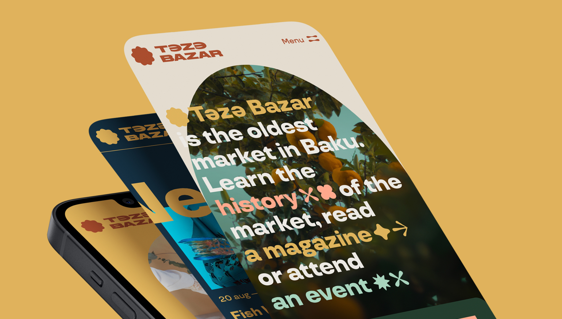 Брендинг для Təzə Bazar получился целостным и современным, он сочетает историческое очарование рынка с актуальной эстетикой, отдает дань уважения прошлому и привлекает новую аудиторию. Проект рассчитан не на одно поколение, поэтому в его основе — гибкая дизайн-система, которая позволит и дальше интерпретировать и развивать новый стиль.