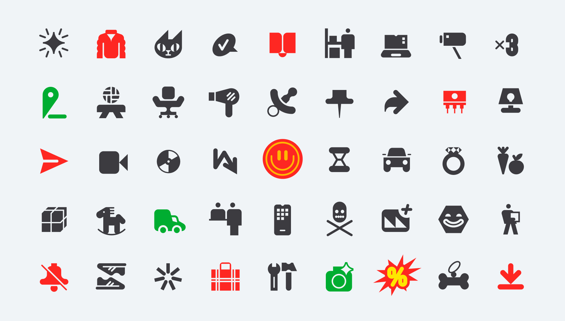 Иконки и пиктограммы — традиционно функциональный атрибут стиля, тем более в продукте, в нашем случае они стали одним из главных элементов «души» продукта. Маленькие и незаметные помощники в навигации по смыслам, пиктограммы заслуживают быть по настоящему живыми и юморными — они как клад, неожиданный сюрприз и подарок, который мы дарим нашим покупателям (абсолютно бесплатно).