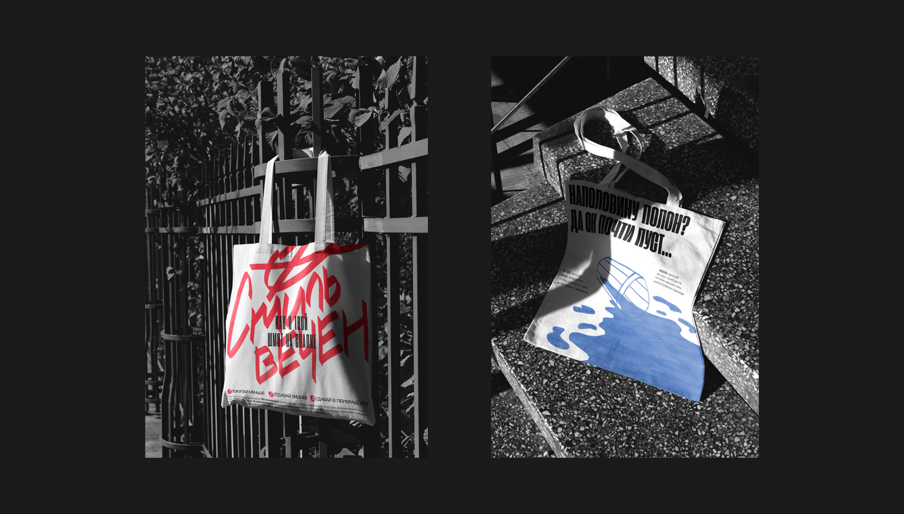 Сумка-шоппер стала символом разумного потребления как альтернатива одноразовым упаковкам из полиэтилена. С тканевых сумок звучат наши дизайн-голоса. Мы говорим о том, что волнует лично нас. Каждый выбирает способ — рисунок, графику, типографику, леттеринг или их комбинацию — чтобы высказаться. Эмоциональные принты подведены к конкретному факту, измеряющему последствия необдуманного потребления ресурсов планеты.