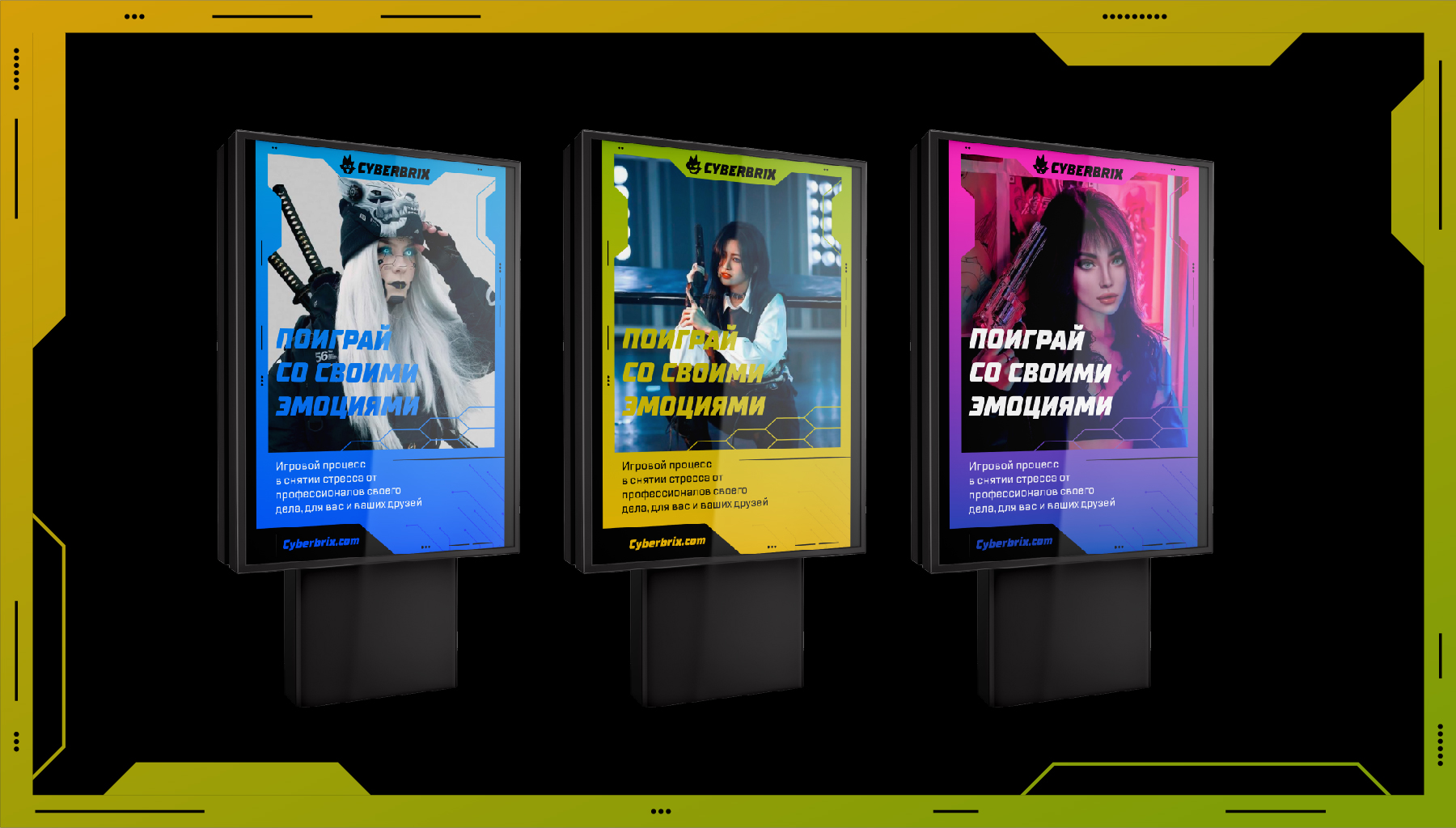В основу данной концепции легла метафора игры - как символа выбора своей роли. Часто в играх элементы находятся в своих квадратиках, данные фигуры были взяты за основу фирменной графики. А так как в современном мире все больше набирает популярность стиль киберпанк, было решено оформить айдентику в этом стиле. Отсюда яркие цвета и технологичные формы.