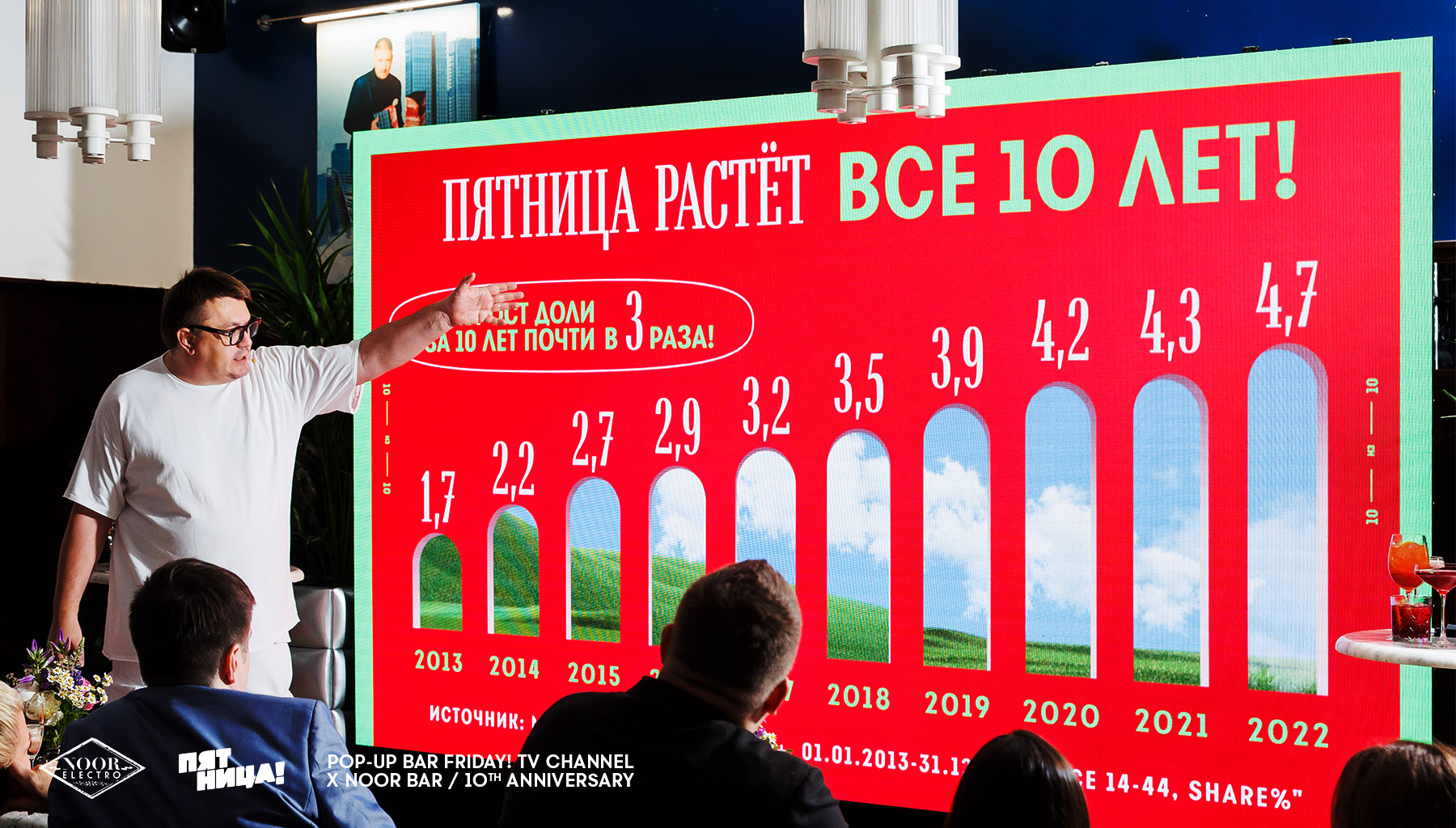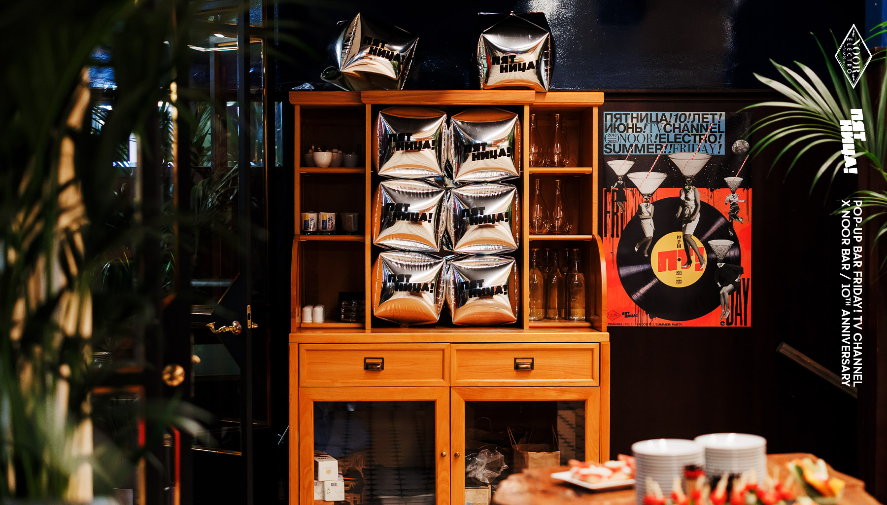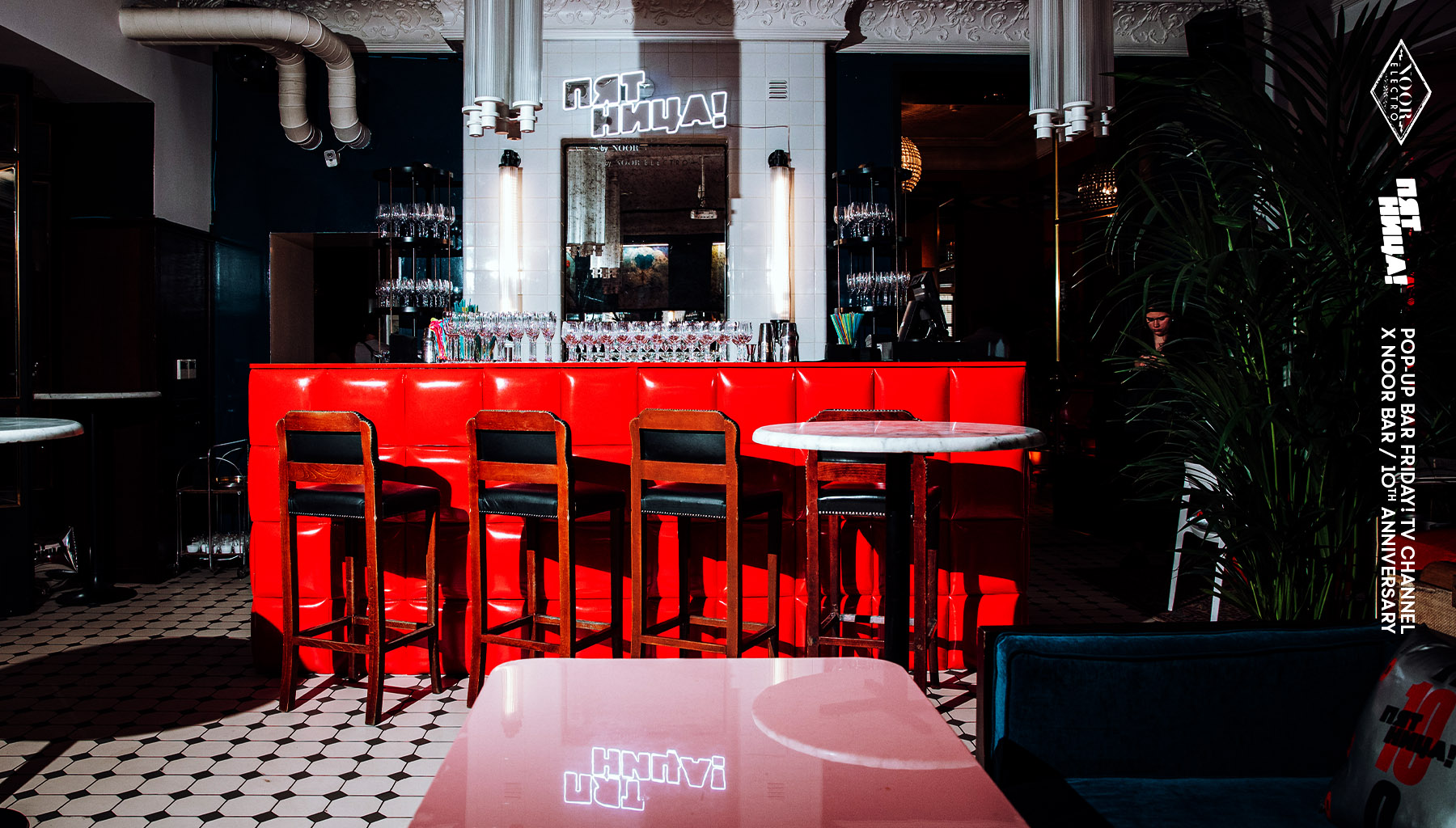 Телеканал Пятница! открыл Pop-up бар в пространстве коктейльного бара Noor, расположенного на Тверской улице в Москве.