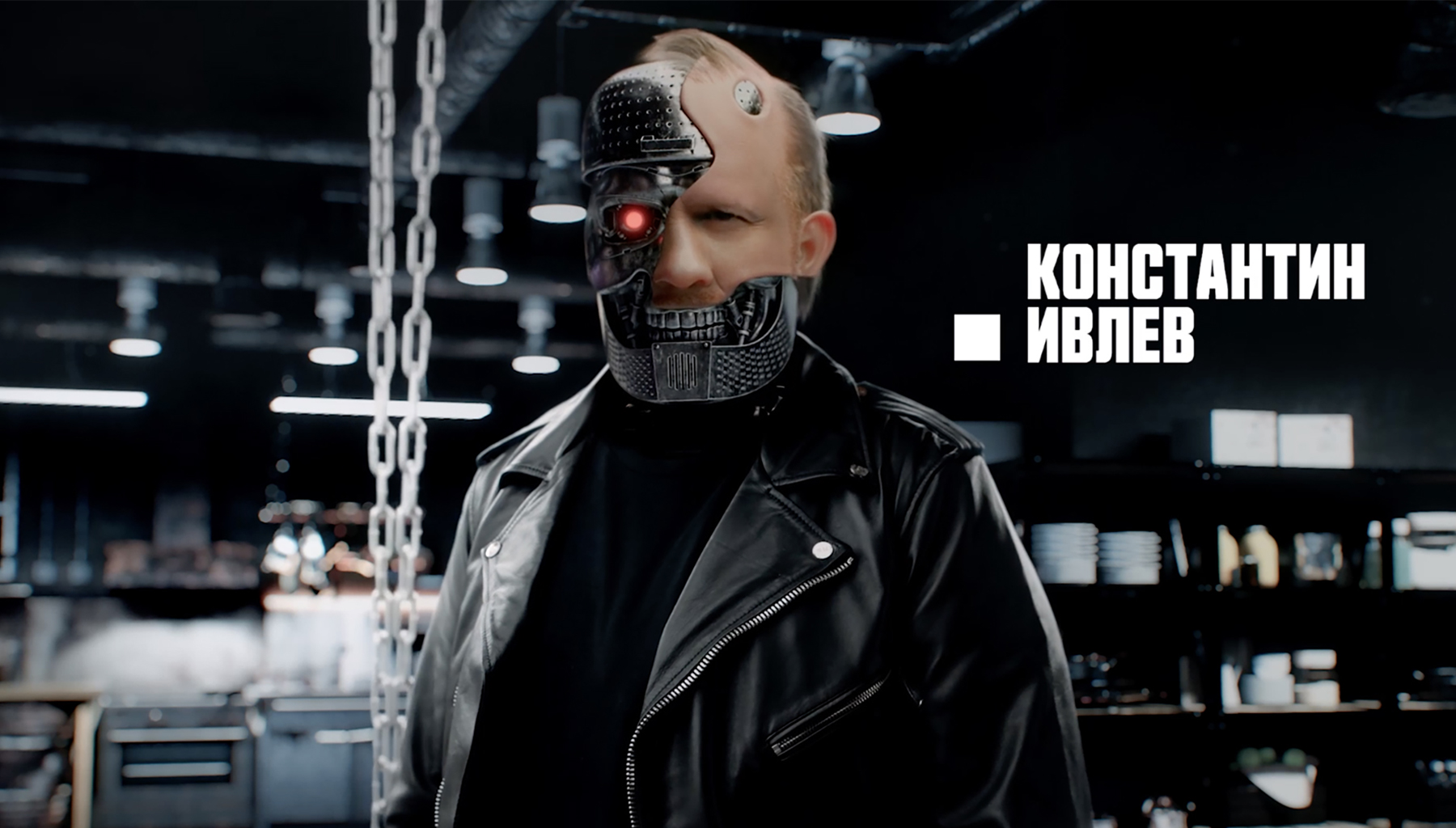 Креативная команда вдохновилась боевиками 80-х годов. Весь ролик представляет собой оммаж на серию фильмов "Терминатор". Ведущие проекта, два шефа, предстают в образе крутых, непобедимых киборгов. Кухня, как неотъемлемый элемент любого кулинарного шоу, также оформлена в апокалиптической стилистике.