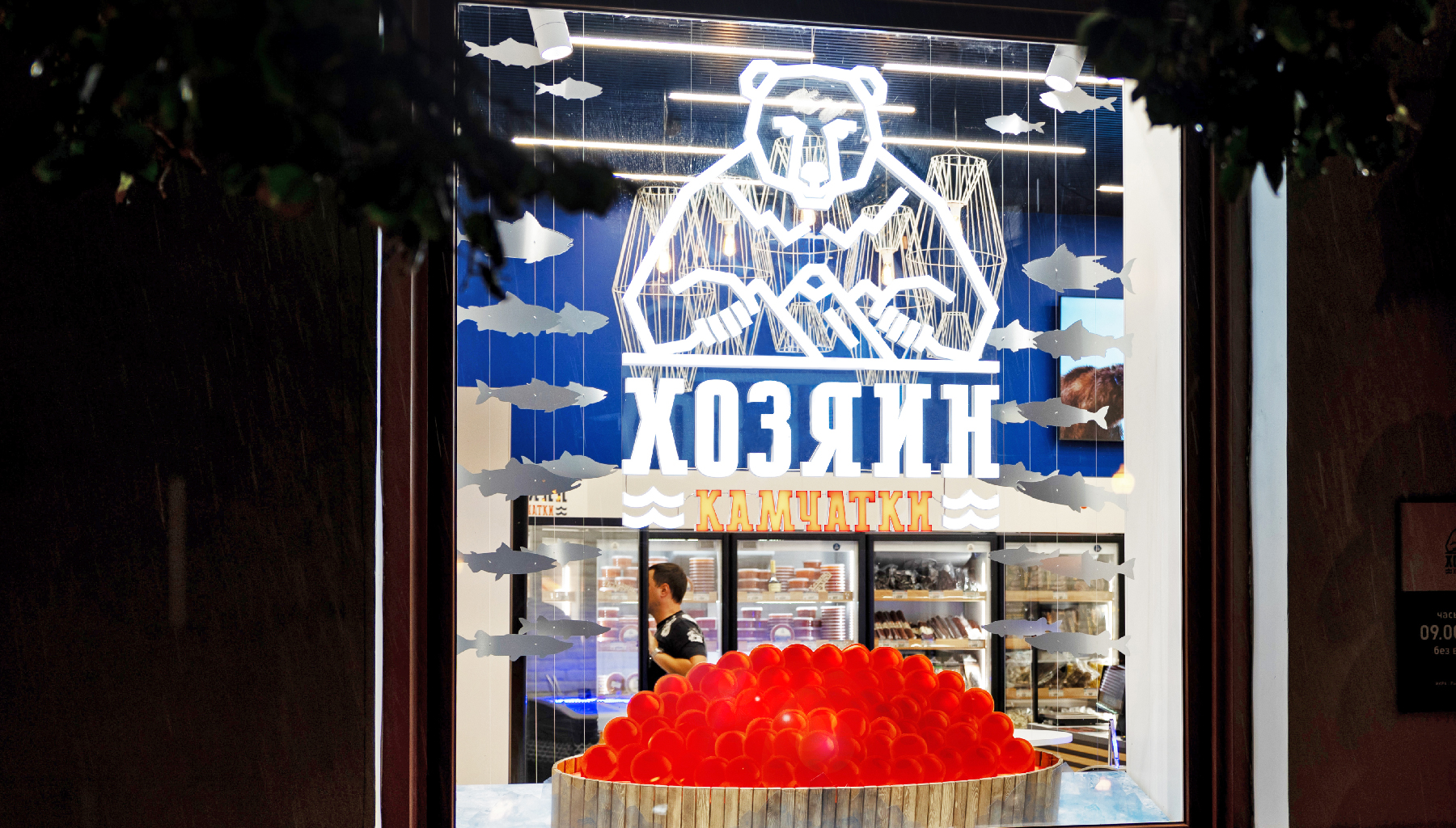 Пилотный проект оформления флагманского магазина «Хозяин Камчатки» включал в себя полный комплекс работ, а именно дизайн и реализацию интерьера и экстерьера. В единой стилистической концепции решены все элементы, начиная от уличной витрины и вывески и заканчивая униформой персонала.
