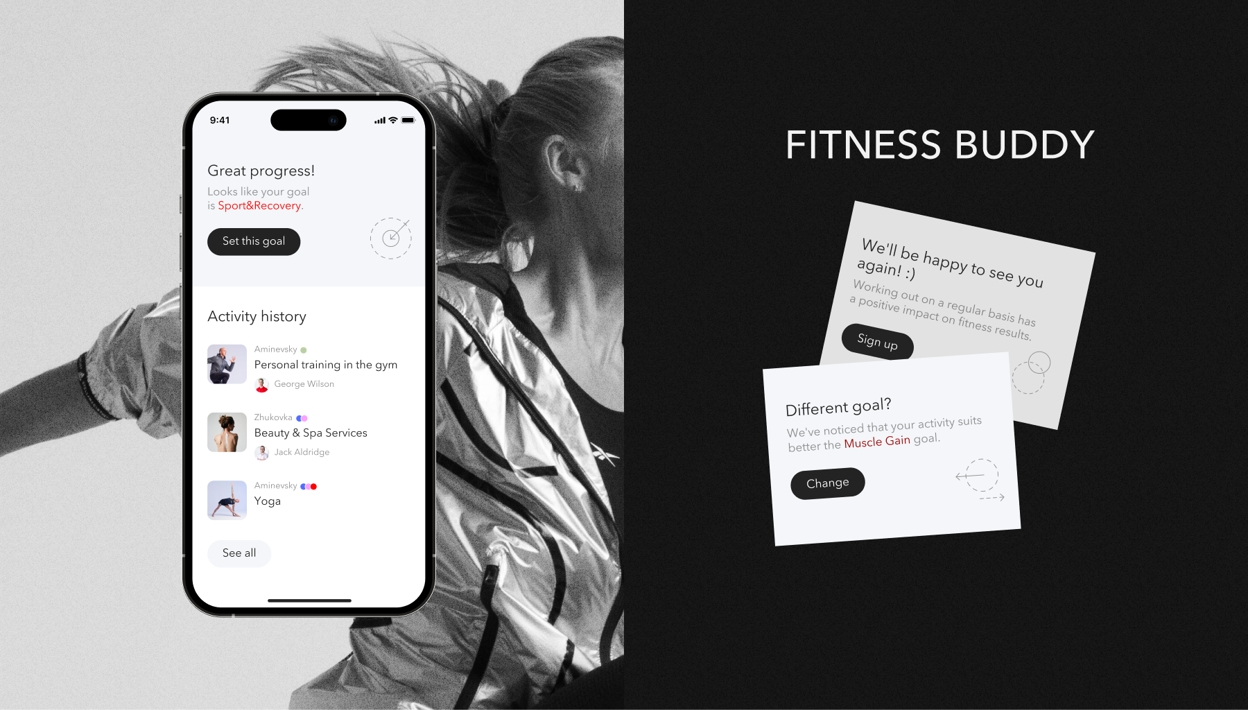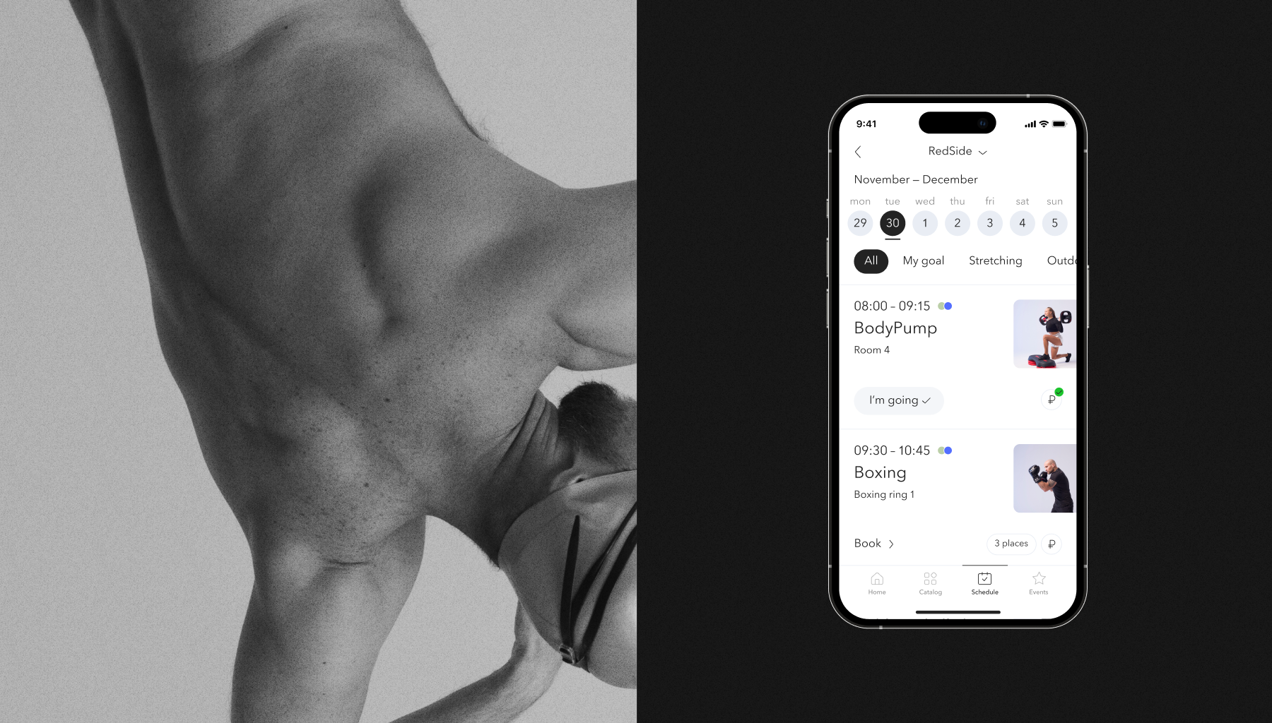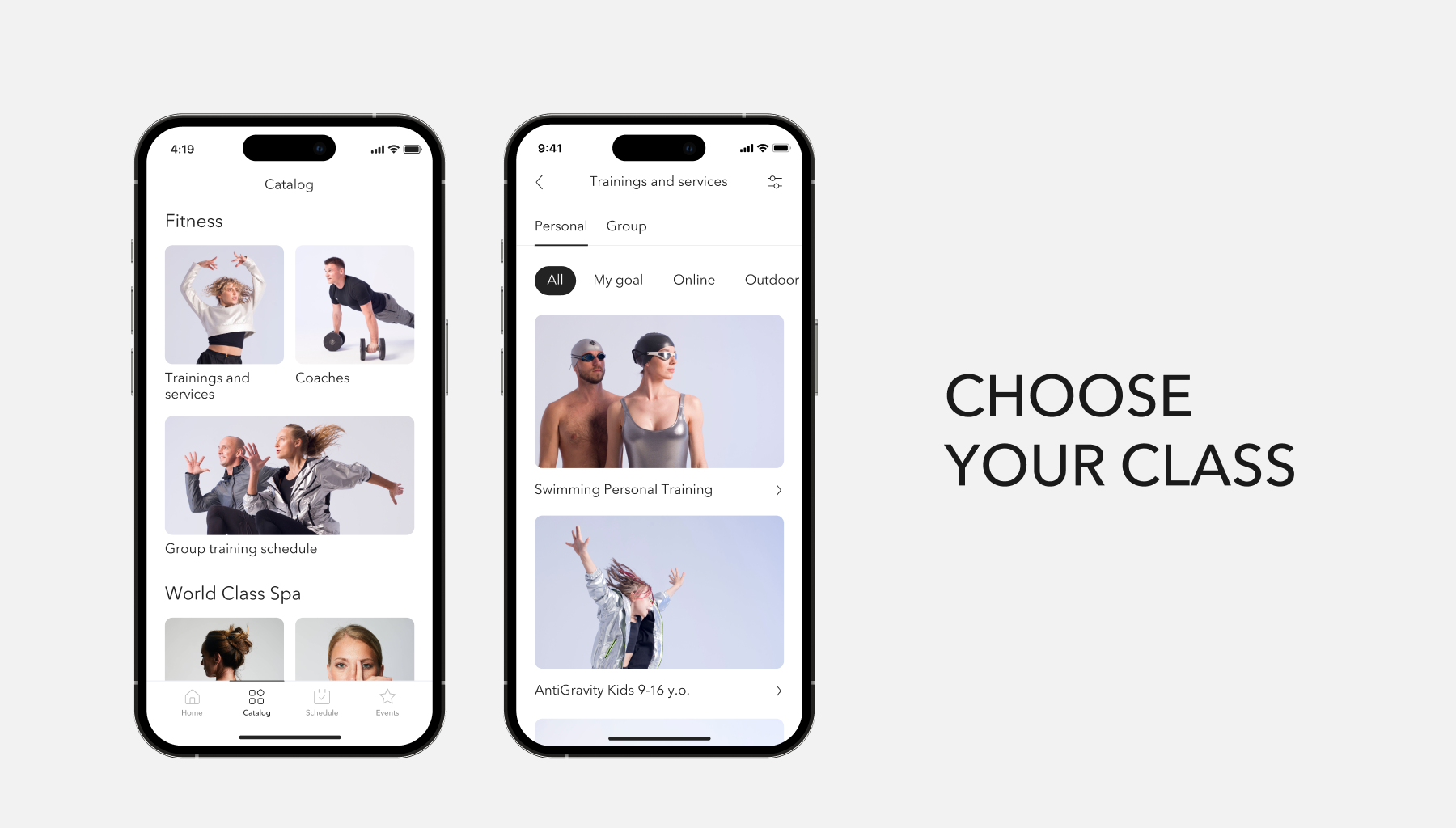 Поэтому мы выбрали минималистичный и довольно строгий дизайн с узнаваемыми деталями бренда и духа World Class. Важной частью концепции стали изображения с инструкторами клуба на занятиях: они задают правильное настроение, мотивируют и вовлекают в тренировочный процесс.