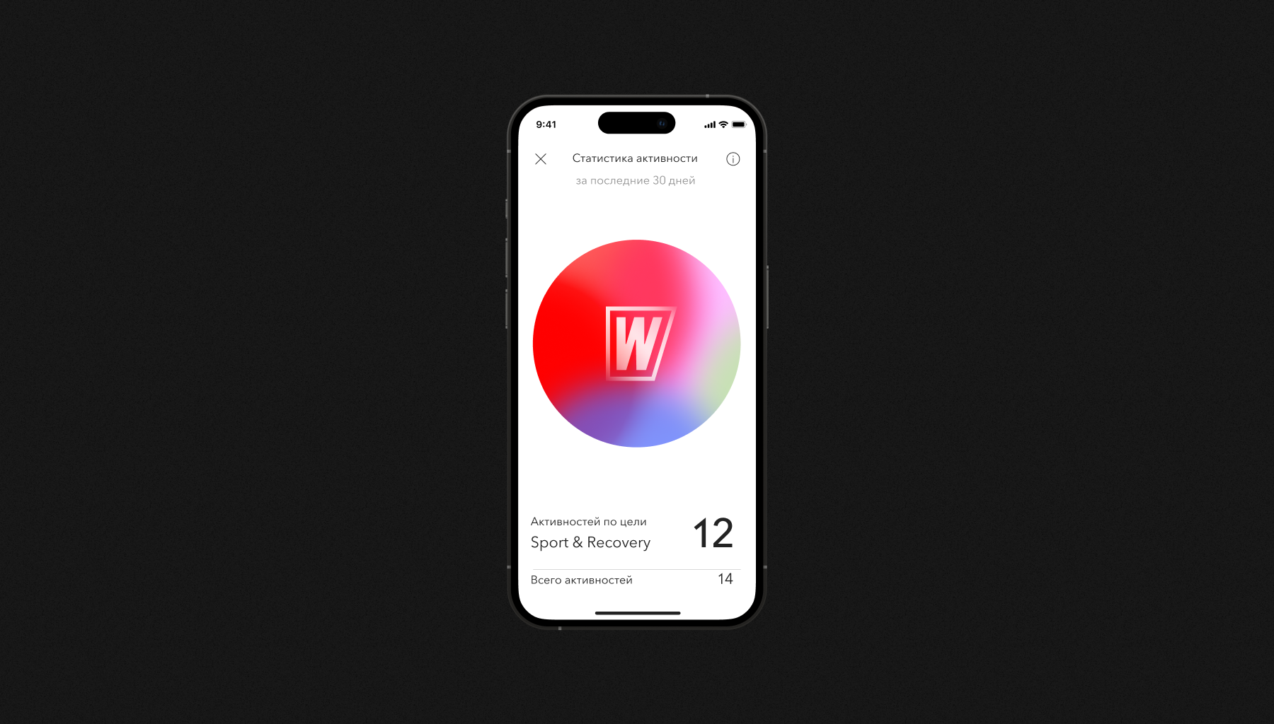Так, шар окрашивается цветами соответствующих активностей, учитывая интенсивность и регулярность занятий, и становится уникальным для каждого клиента World Class. Такое решение классно поддерживает мотивацию пользователей к тренировкам.