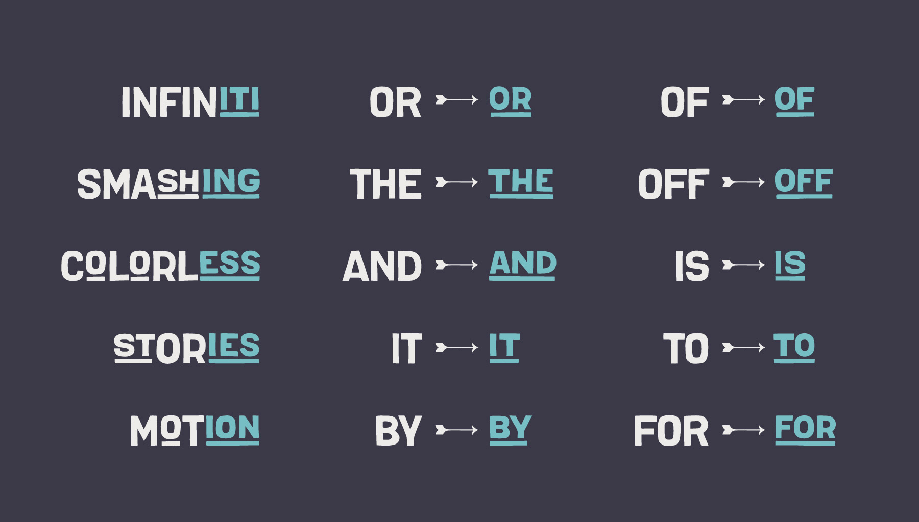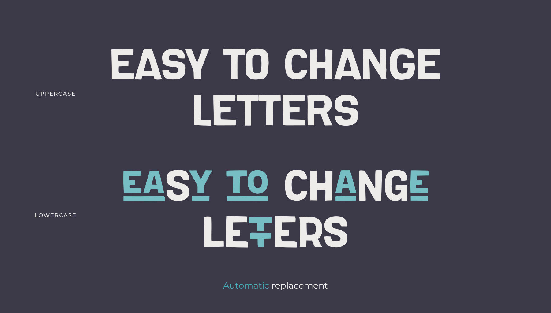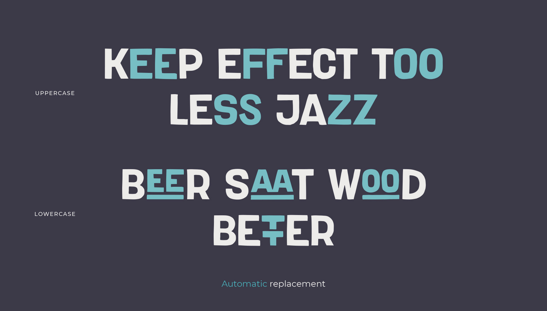 В шрифте Massachusettz содержится множество альтернативных букв, различных лигатур и графических элементов. Он легко адаптируется и уверенно взаимодействует с дизайнером, а также может изменяться в зависимости от контекста и цели использования.