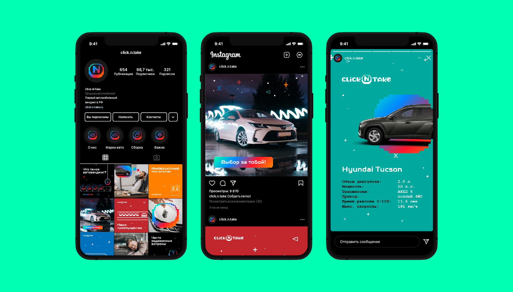 Главные действия при покупке в автовендинге - это кликнул и забрал. Дословно на английском Click and take. Отсюда нейминг - "Click-N-Take". Выбрал. Собрал. Забрал.