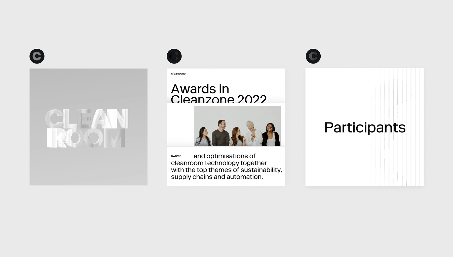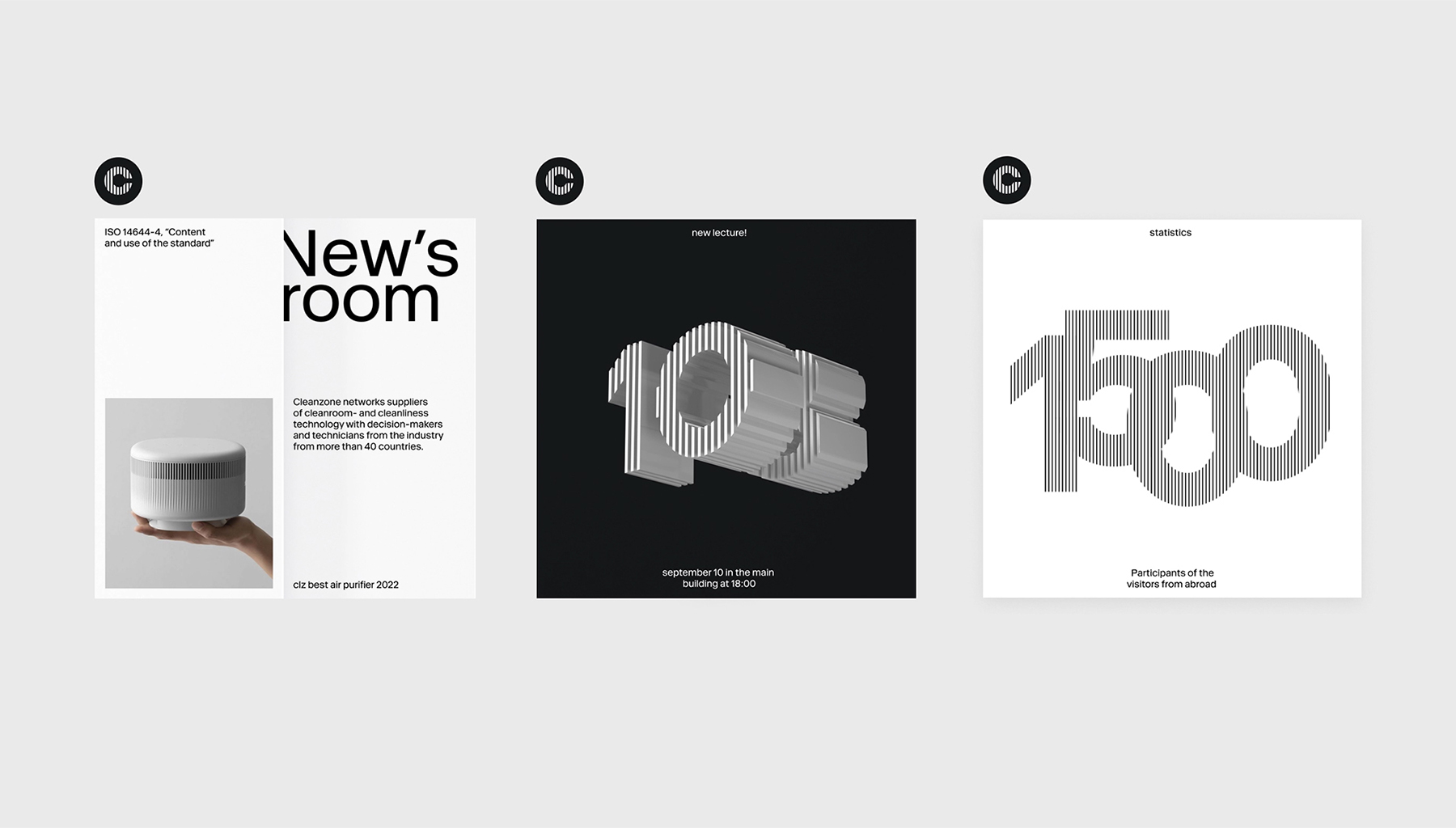 Фирменный стиль построен на принципе фильтрации. В качестве графики используются обобщенный образ фильтра. Через него «просеивается» весь контент, оставляя только самую нужную информацию на макете. Таким образом, Cleanzone соблюдает чистоту не только в своих разработках, но и в своём позиционировании.