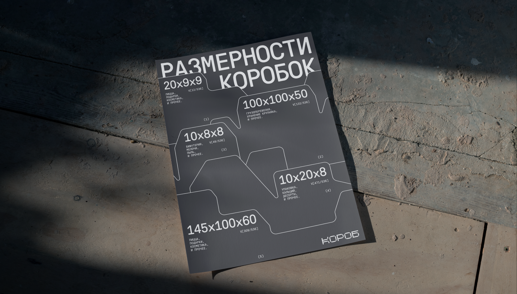 Основная концепция дизайна строится на стандартных формах развертку любой коробки. Она может быть как и контейнером для фотографий или текста, так и отдельной графикой на листе. А в некоторых случаях развертка может служит формой макета.