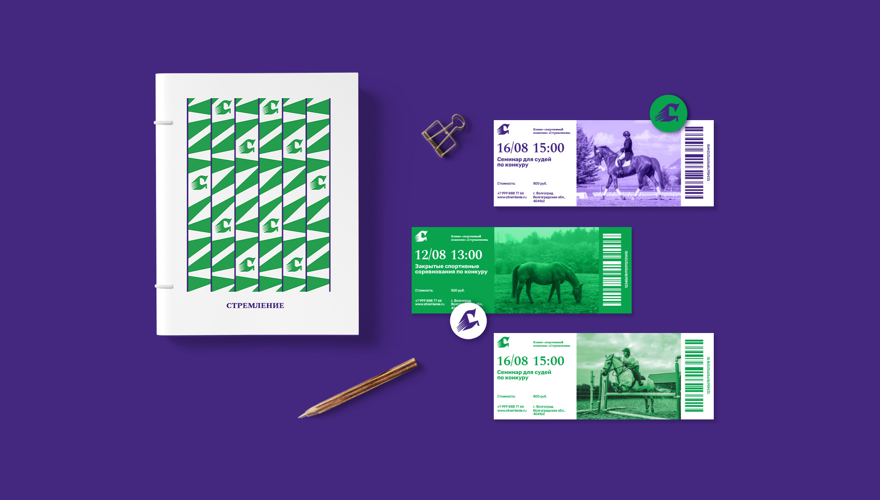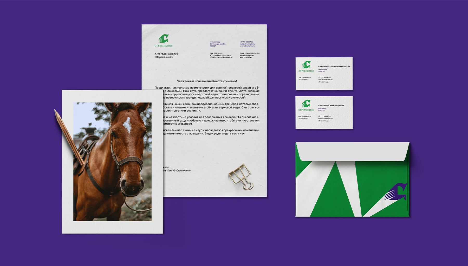 Фирменный дизайн для конного клуба «Стремление» создан для того, чтобы передать неповторимую атмосферу грации, движения и энергии, которые характерны для конного спорта.