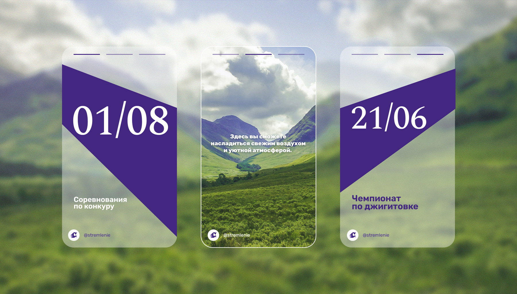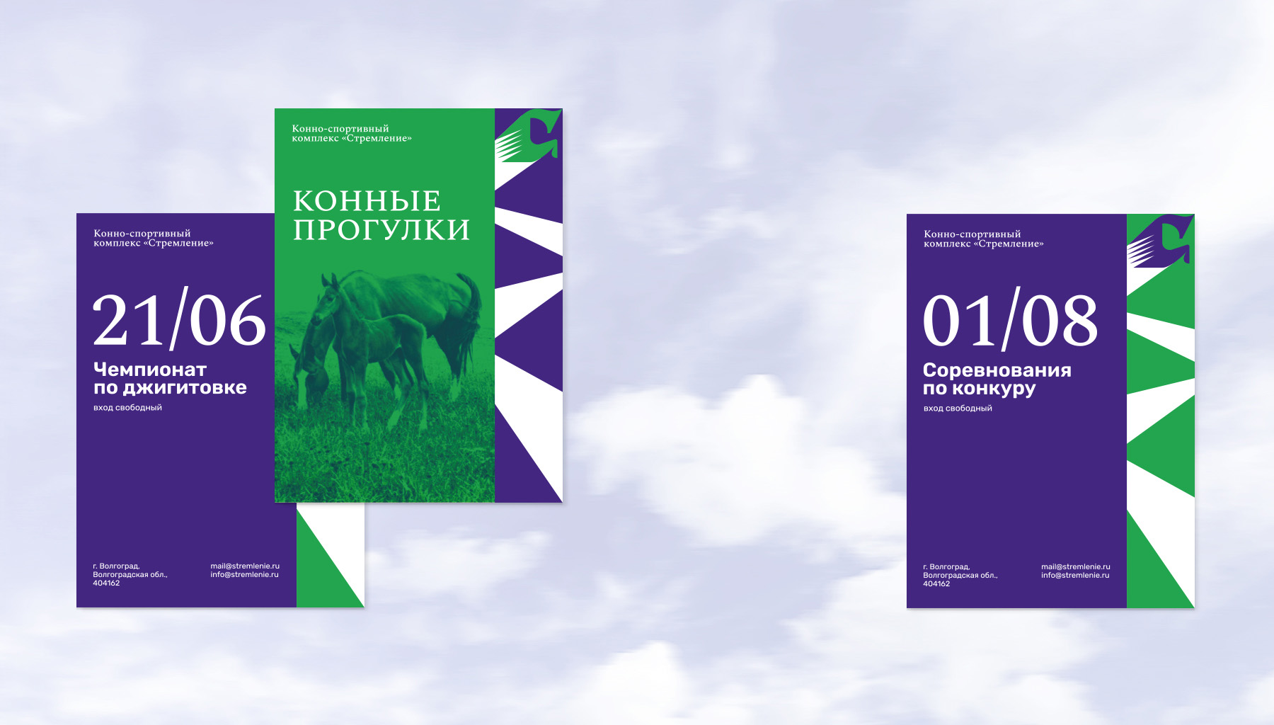 Динамика является ключевым элементом в создании уникальной и запоминающейся идентичности, отражая ценности данного конного сообщества. Все фирменные элементы бренда образуют привлекательный контраст и дополняют друг друга. Зеленый и фиолетовый, антиква и гротеск, блочная верстка и динамичные графические элементы.