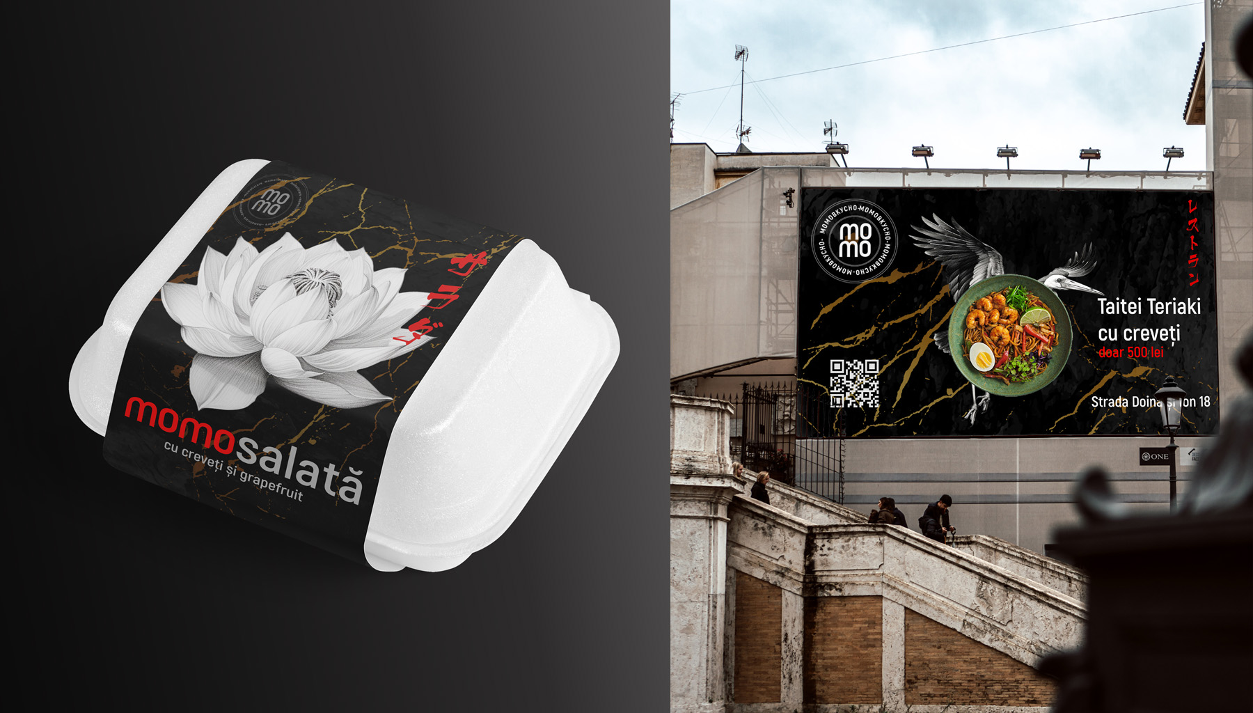 Хочу рассказать вам историю создания ребрендинга для ресторана “MOMO”. Этот ресторан получил множество дизайн-наград в сфере интерьера в Сша и других странах, но визуальная составляющая бренда существенно отличалась от интерьера. Так как ресторан выполнен и настроен на Азиатскую кухню , хотелось создать что-то в этом стиле, сохранив преобладающие цвета интерьера, добавить уникальные черты. Само название заведения нам говорило о том , чтобы создать с ним интересные смысловые высказывания, объединив визуально с форматом заведения. Так как носители и акции меняются достаточно часто, а использование рекламных площадок варьируется от онлайн до оффлайн, была создана адаптивная графика, чтобы не усложнять процесс иллюстрации. На финале нашей работы мы сохранили узнаваемость торговой марки. Отталкиваясь от небольших правил, можно с легкостью менять смыслы и подачу, сохраняя узнаваемый образ. Необычные иллюстрации, формат юмора, повышение ценности и цены за счет визуальной формы и подачи, все это объединило интерьер, кухню и образ заведения в одну точку.