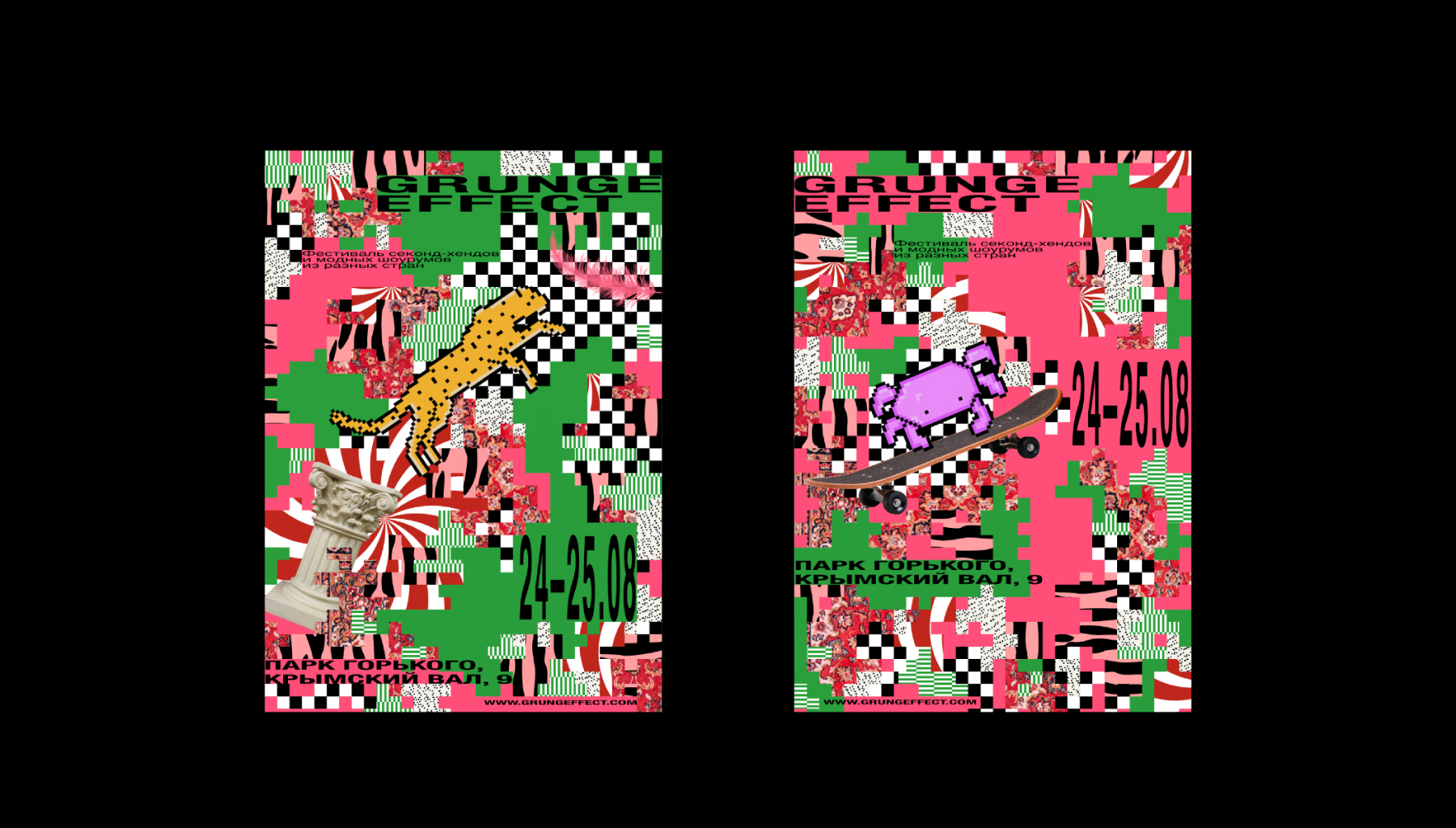 Концепция айдентики и дизайна для фестиваля секонд-хэндов и молодых дизайнеров из разных стран. Место, объединяющее людей, влюбленных в атмосферу гранжа, моды, рок-музыки и поддерживающих экологию и культуру вторичной переработки. ЦА: жители и гости г. Москва, возраст 16—40 лет.