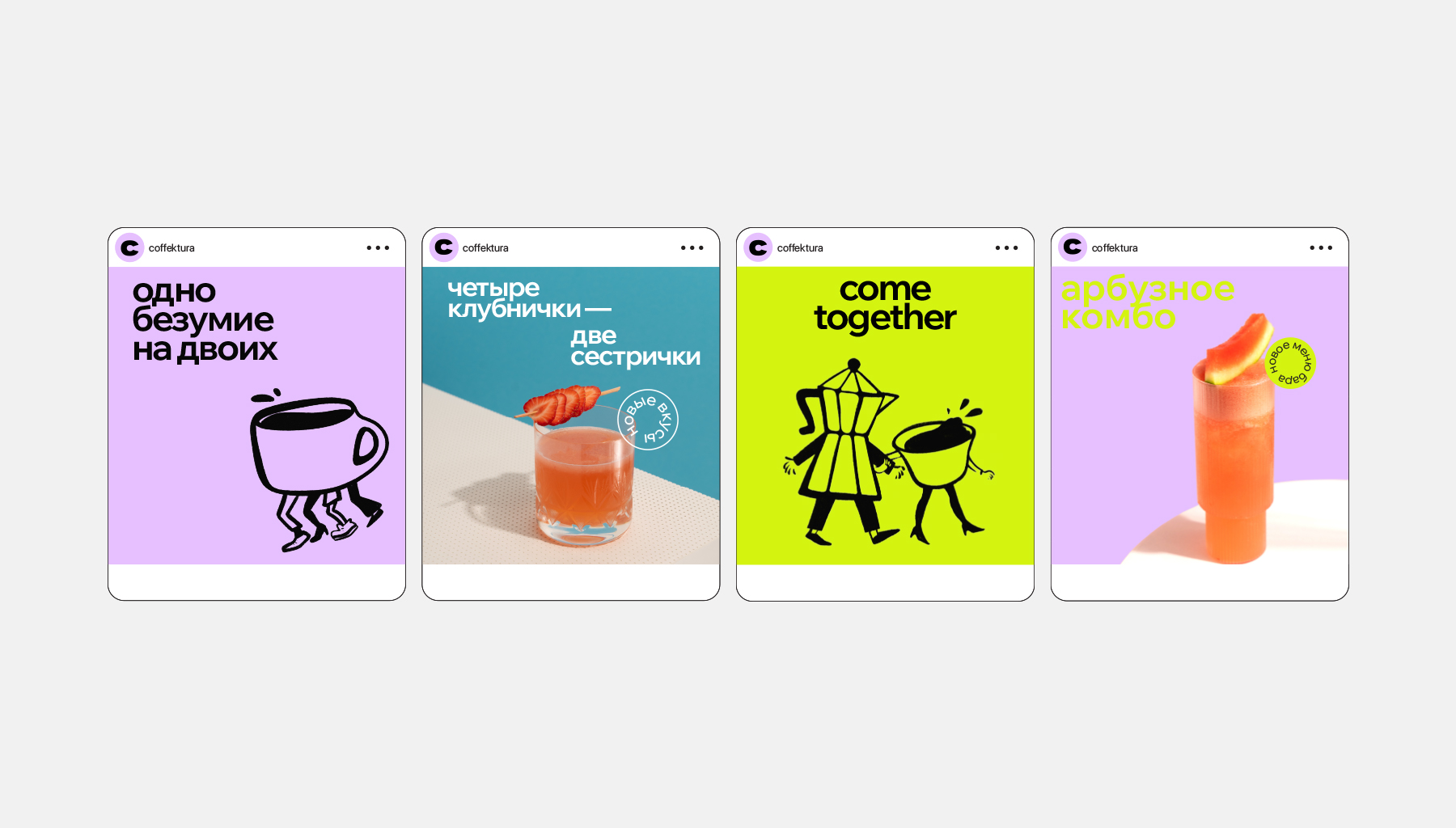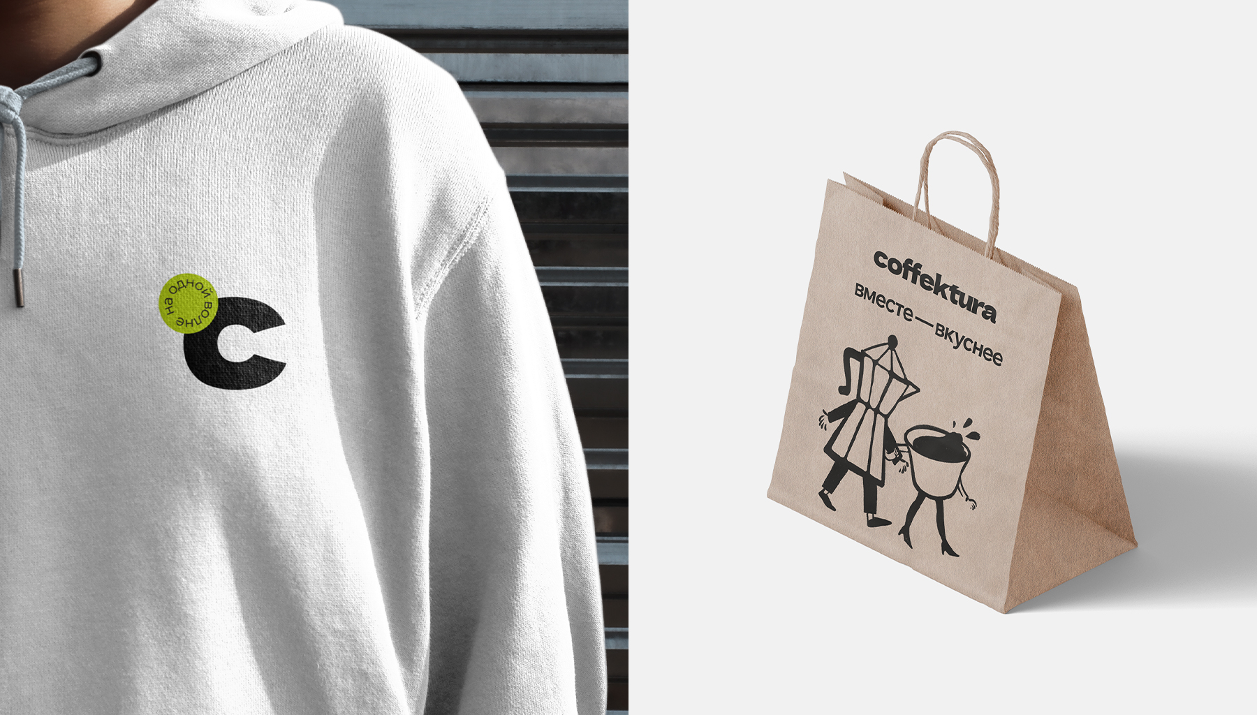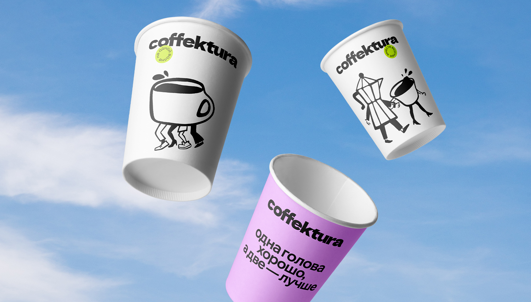 К нам обратились за разработкой нейминга и айдентики, которые характерно выделят проект среди конкурентов, повысят узнаваемость. Нейминг образован из слова — кофе, что напрямую отсылает к формату заведения и окончаний слов — культура и мануфактура. Приходя в кофейню, гости окультуриваются интересными беседам. Кроме того, кофейня является своеобразной "мануфактурой", которая производит напитки, блюда и сладости. Айдентика строится на атмосфере коммуникации, сближения, объединения. В качестве метафоры мы выбрали слоган «одна голова хорошо, а две лучше». Это говорит о том, что самые классные идеи случаются в паре, компании, а чашечка вкусного кофе в Coffektura станет отличным дополнением диалога и поиска идей.