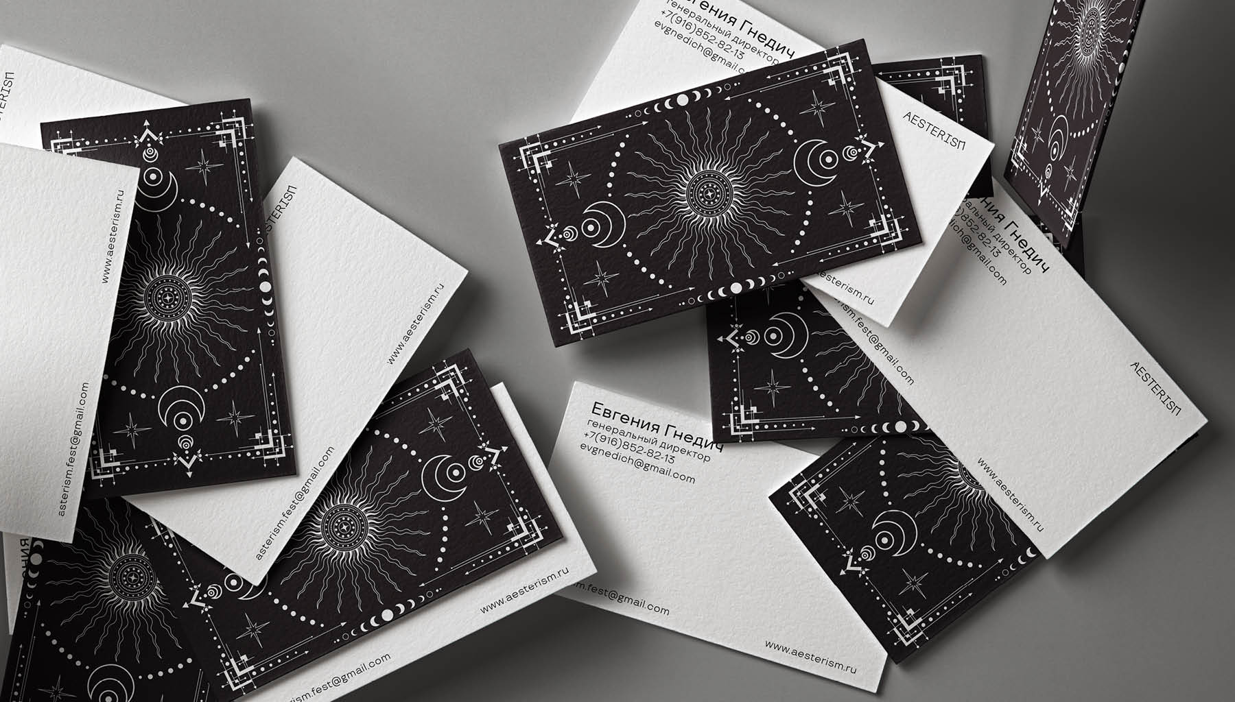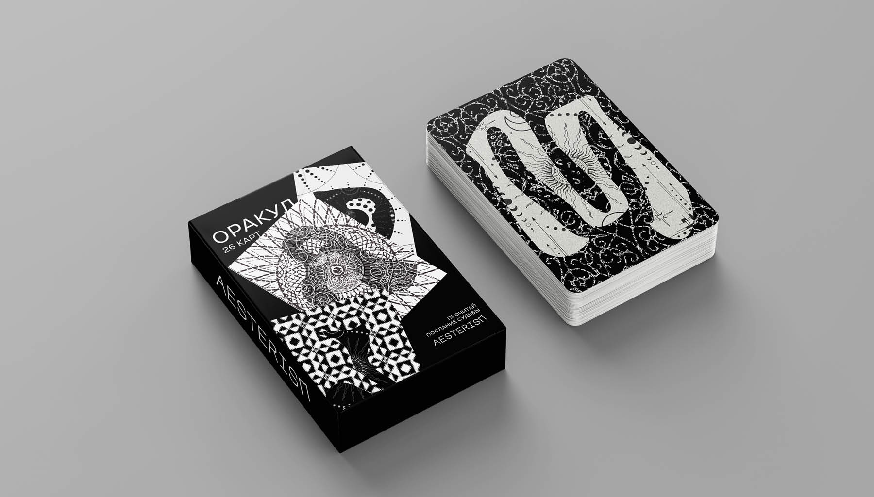 Метафорой для фирменного стиля стали рубашки карт Таро. Было отрисовано несколько карточных рубашек, которые были наложены друг на друга. Наложение — это метафора того, как во время гадания разные смыслы и трактовки накладываются друг на друга, образуя предсказания.