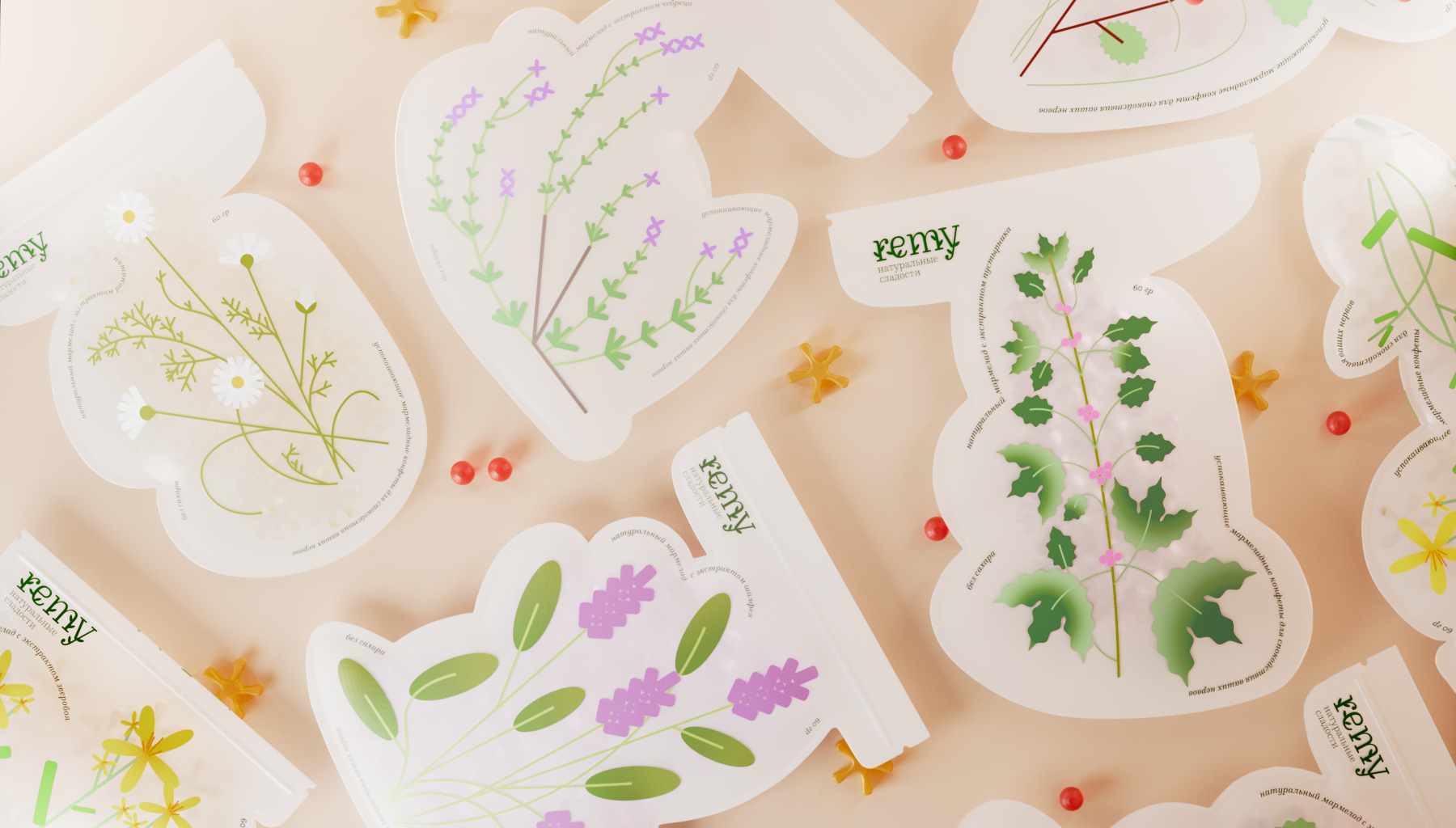 Remy – бренд натуральных сладостей с экстрактами успокаивающий трав для сохранения нервов наших покупателей.