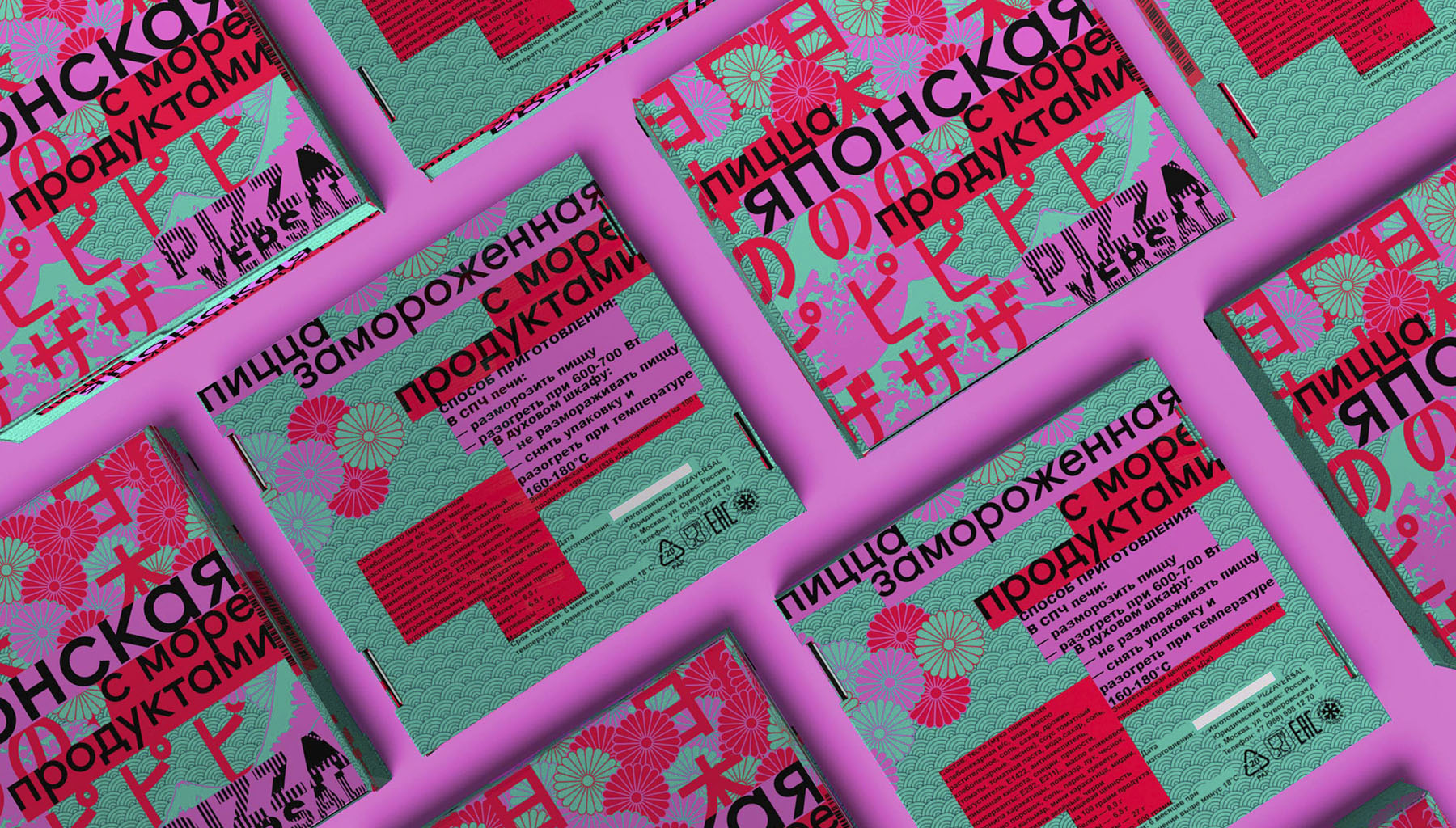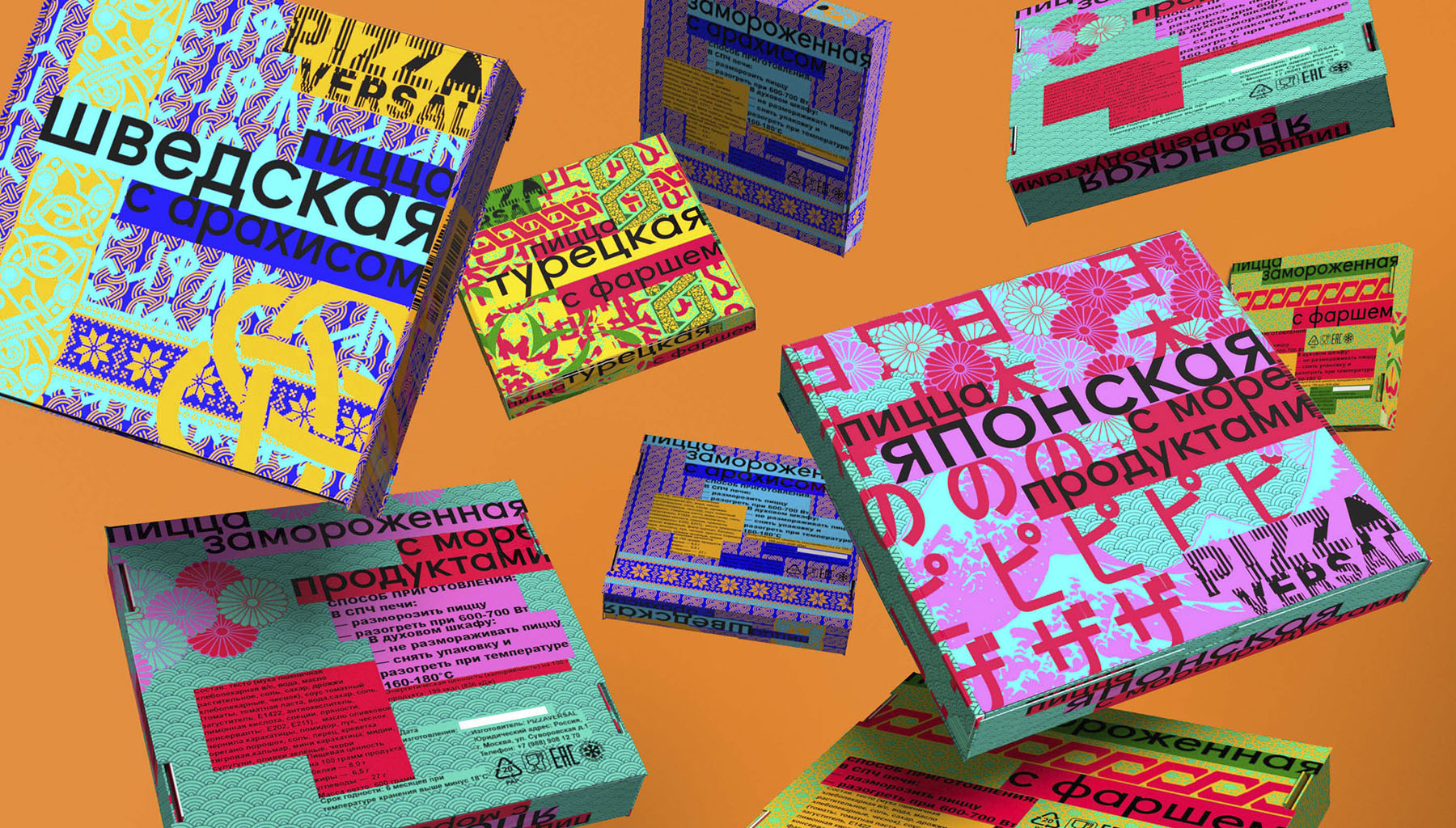 В задумку дизайна легла идея использовать местные и самые характерные узоры для выбранных стран. Сплетаюсь друг с другом они образовывают смесь аналогичную смеси из продуктов для пиццы. Для большего отличия от аналогов в упаковке использованы яркие и сочные цвета.