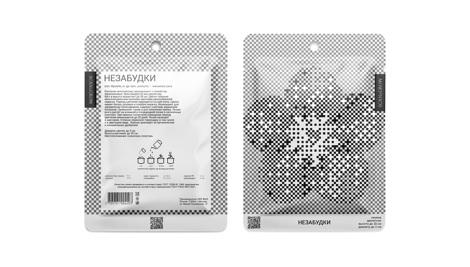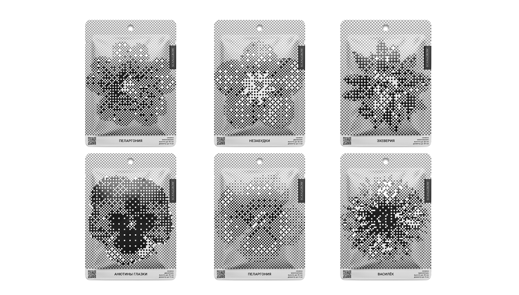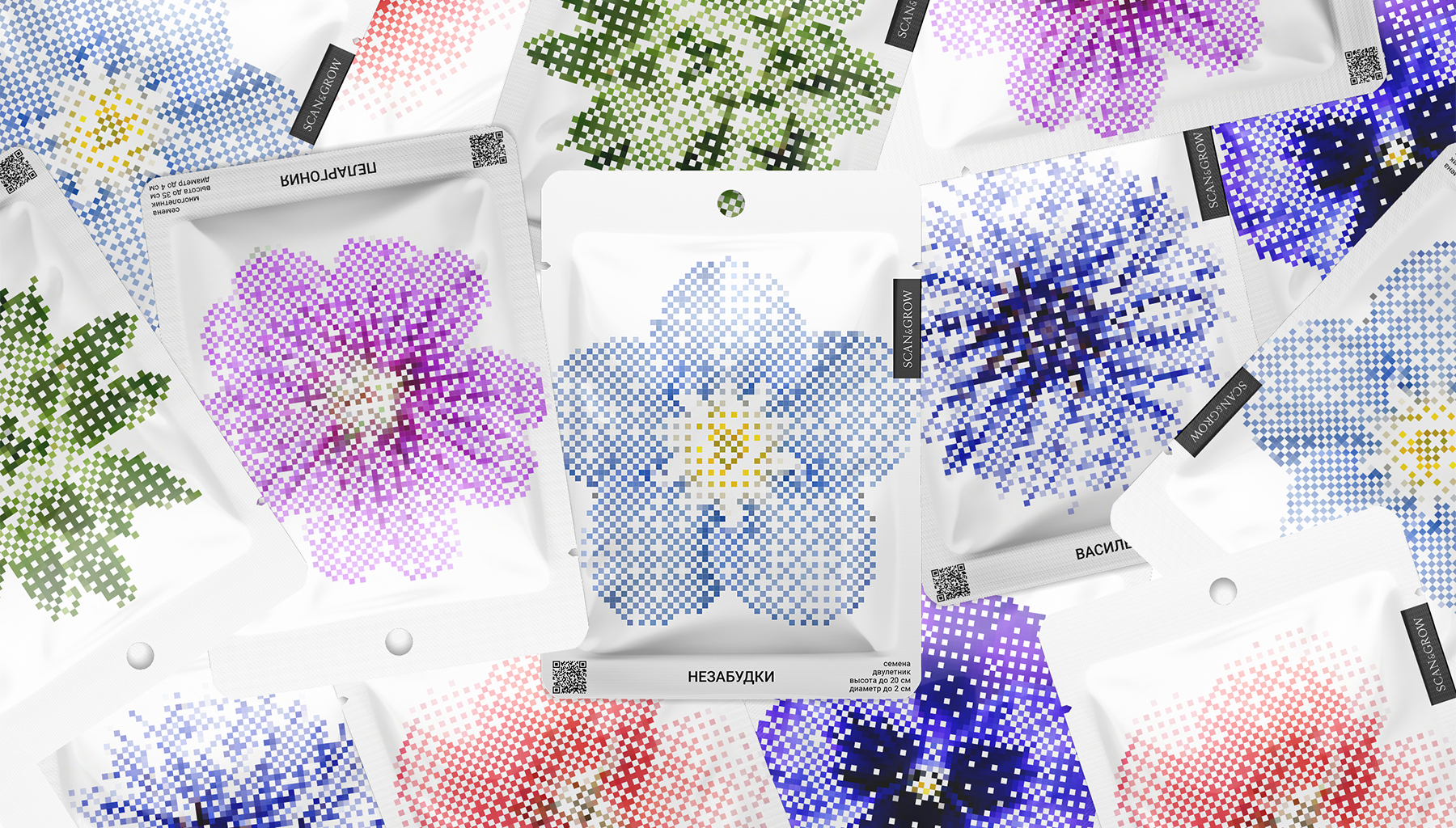Упаковка семян Scan&Grow интригует своим видом, qr-код раскрывает цвет растения и инструкцию по уходу.