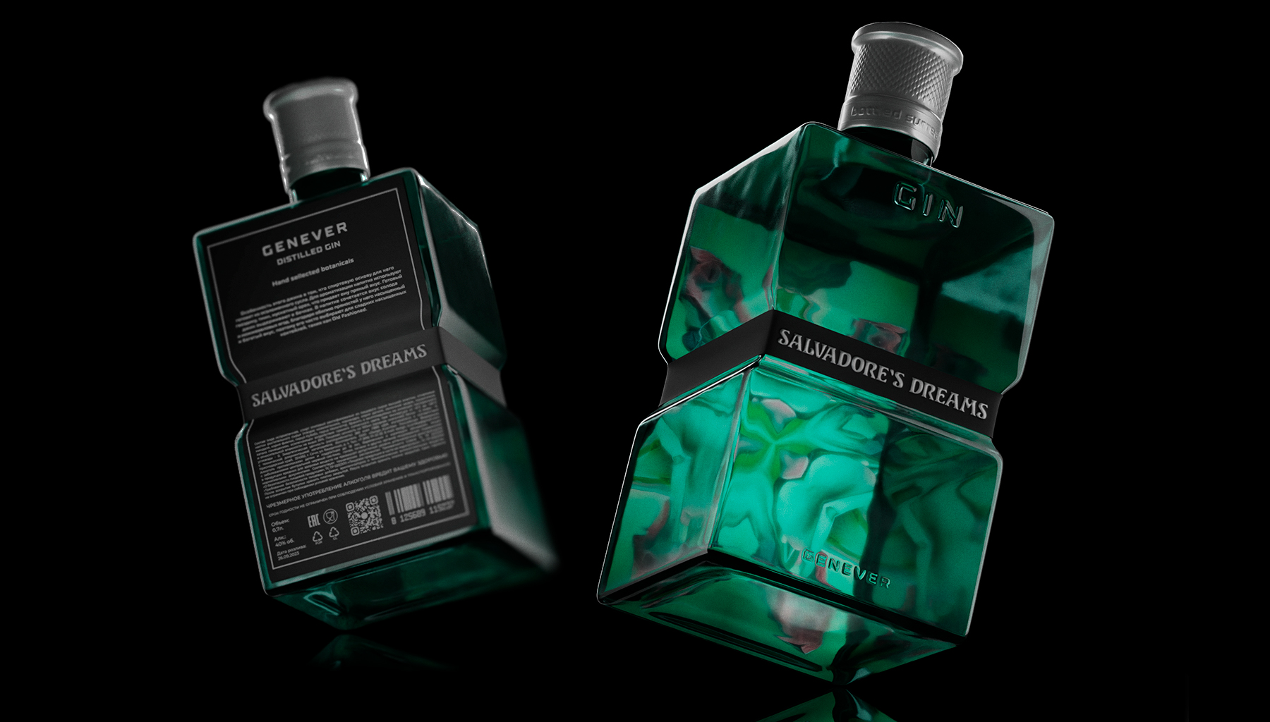 Основа дизайна упаковки - картины смелого и гениального представителя сюрреализма Сальвадора Дали соединённые со словом «джин» и пропущенные через современный взгляд нейросети. Эти генерации стали основой калейдоскопа сновидений Сальвадора.