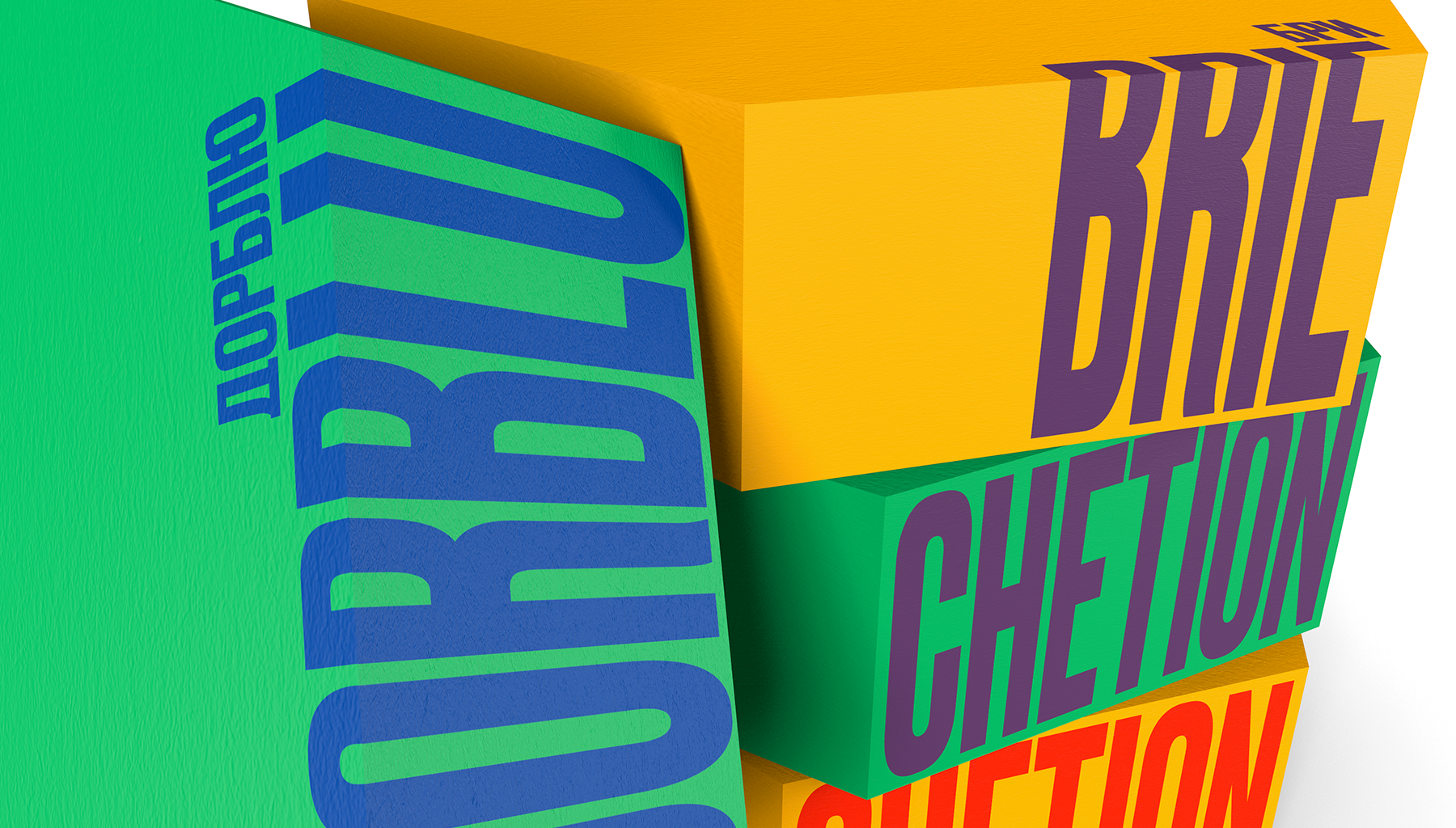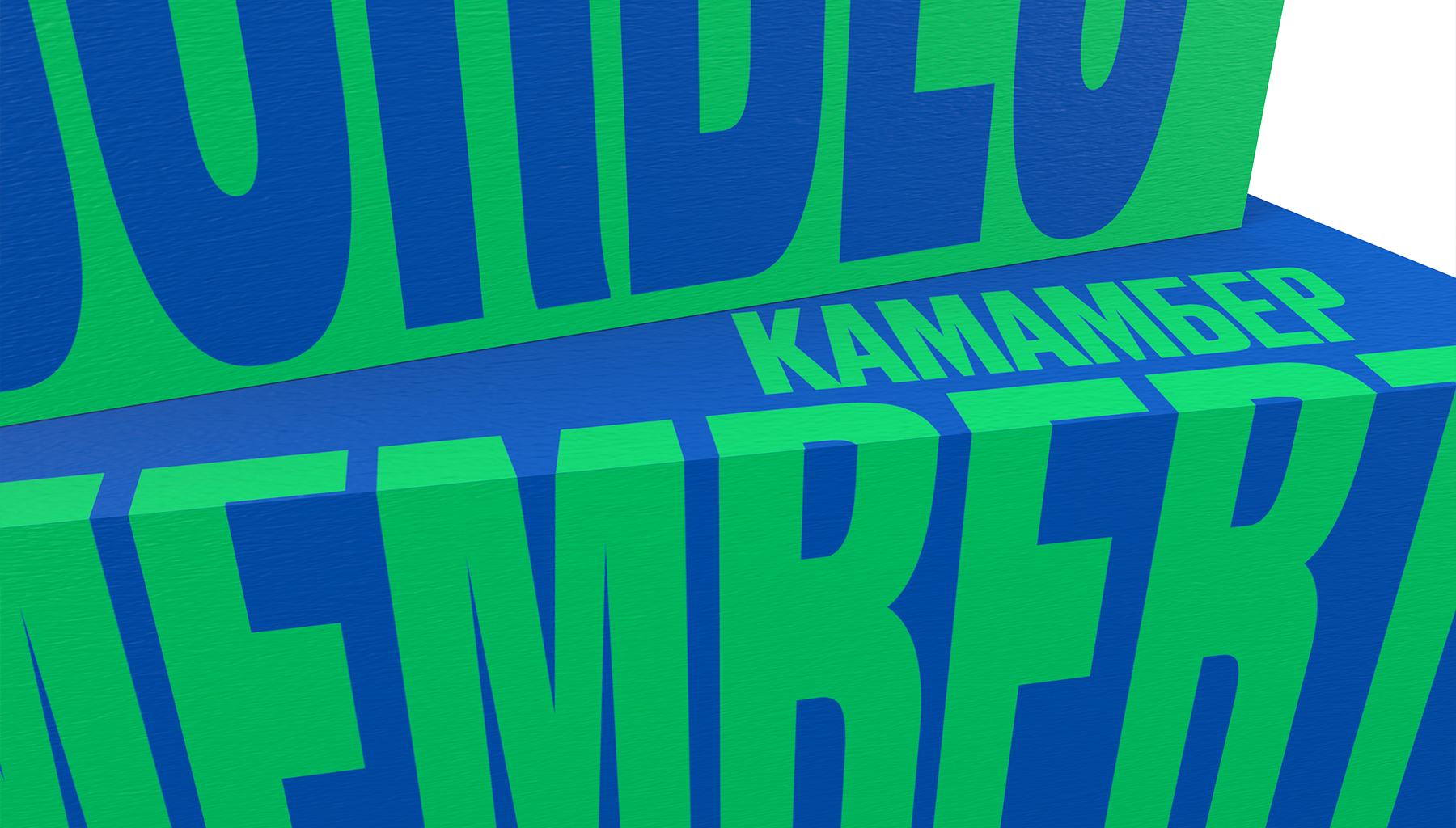 Метафора дизайна заключается в том, что буквы перетекают с плоскости на плоскость, как сыр, ведь в проекте использованы именно мягкие сорта сыра.