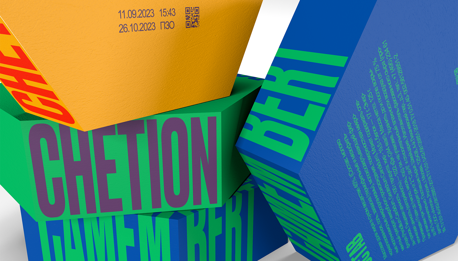 Поэтому в основу упаковки легли яркие цвета и гротесковый шрифт. Во-первых, этот дизайн привлечёт взгляд покупателя на общей полке продуктов. Во-вторых, такой визуальный язык сильно отличается от конкурентов с высоким ценником, ведь у них в основе лежит минимализм, антиква и золочение фольгой элементов. А CHETION не про «дорого».