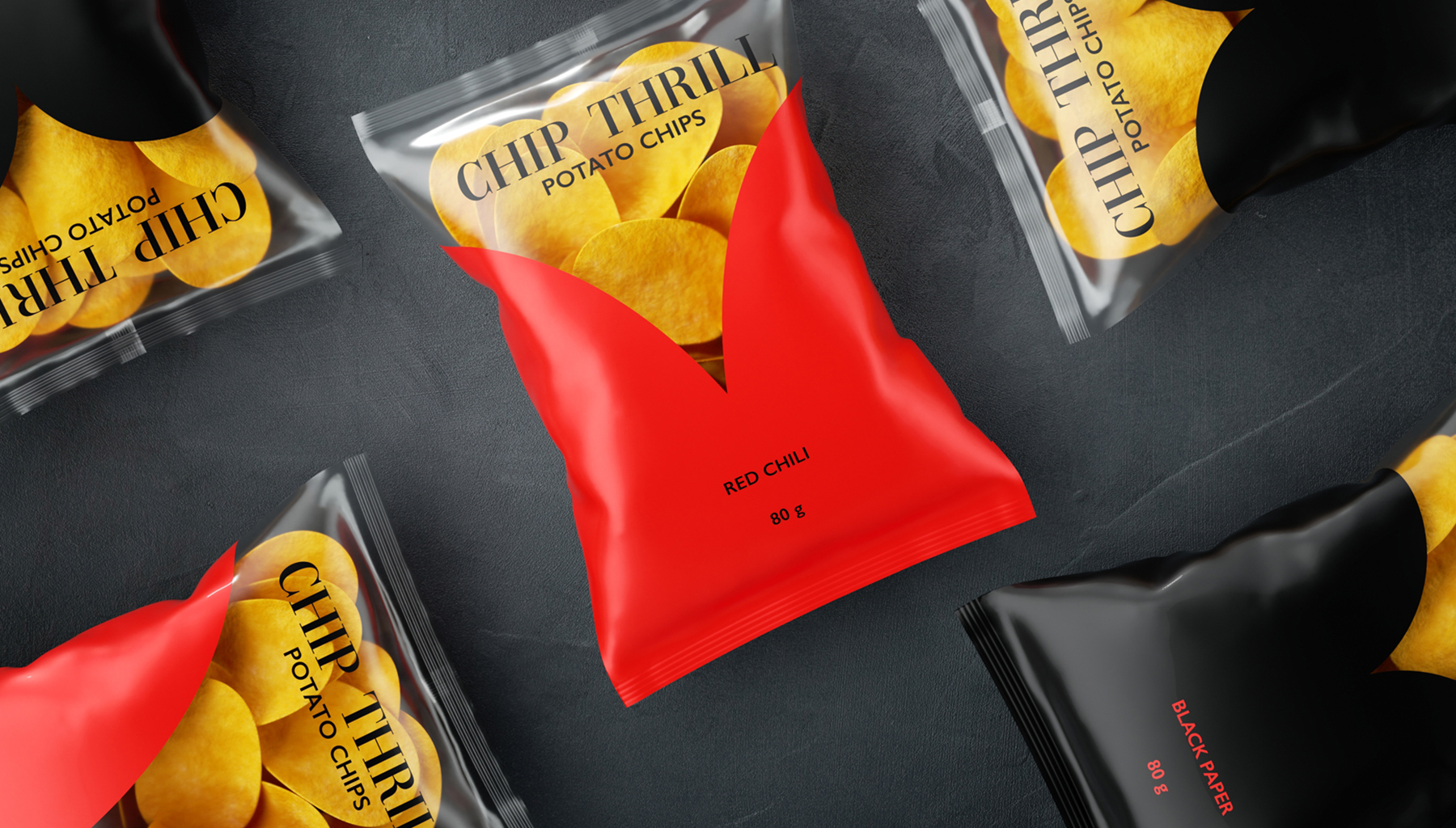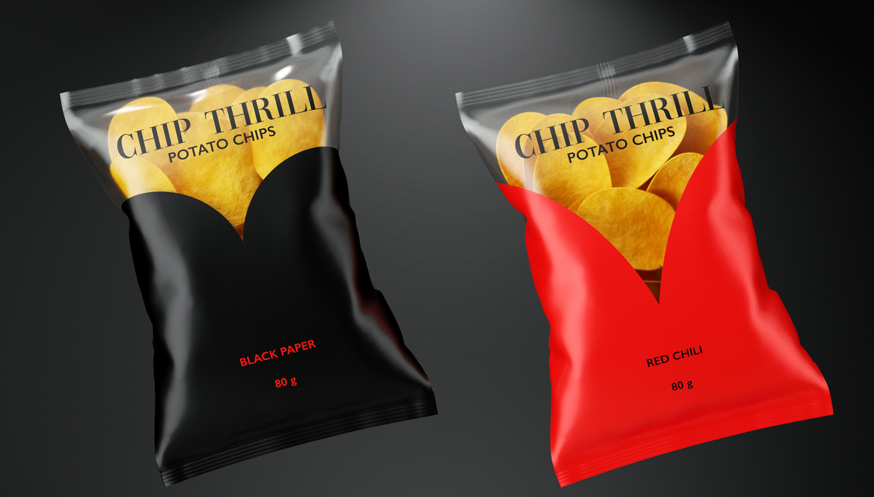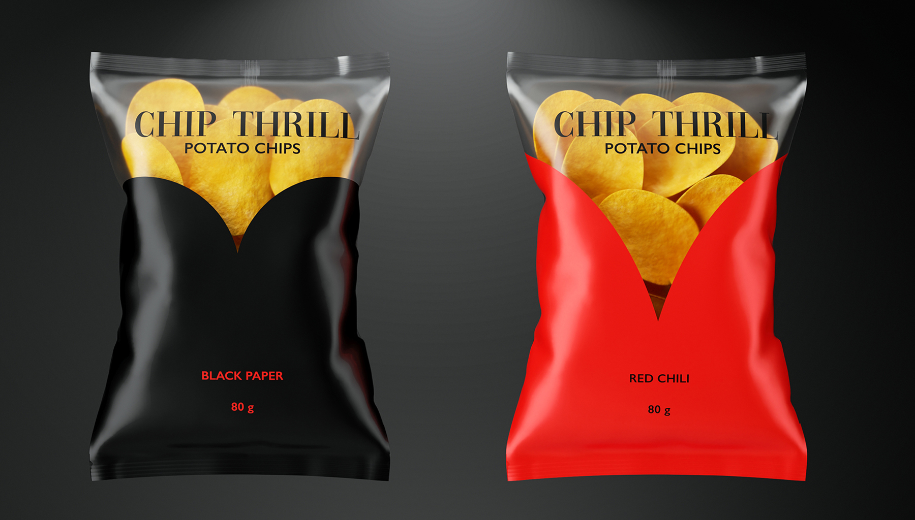 CHIP THRILL чипсы имеют два пряных вкуса: красный чили и черный перец. Цвет платьев на упаковке соответствует содержимому чипсов, и это добавляет элемент эстетики и визуального восхищения. За счет такой необычной упаковки, они могут вносить яркость и поднять настроение, настраивая на приключения и веселое времяпрепровождение.
