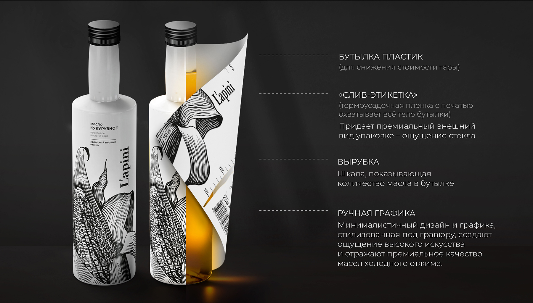 Концепция упаковки для растительных масла холодного отжима LAPINI.