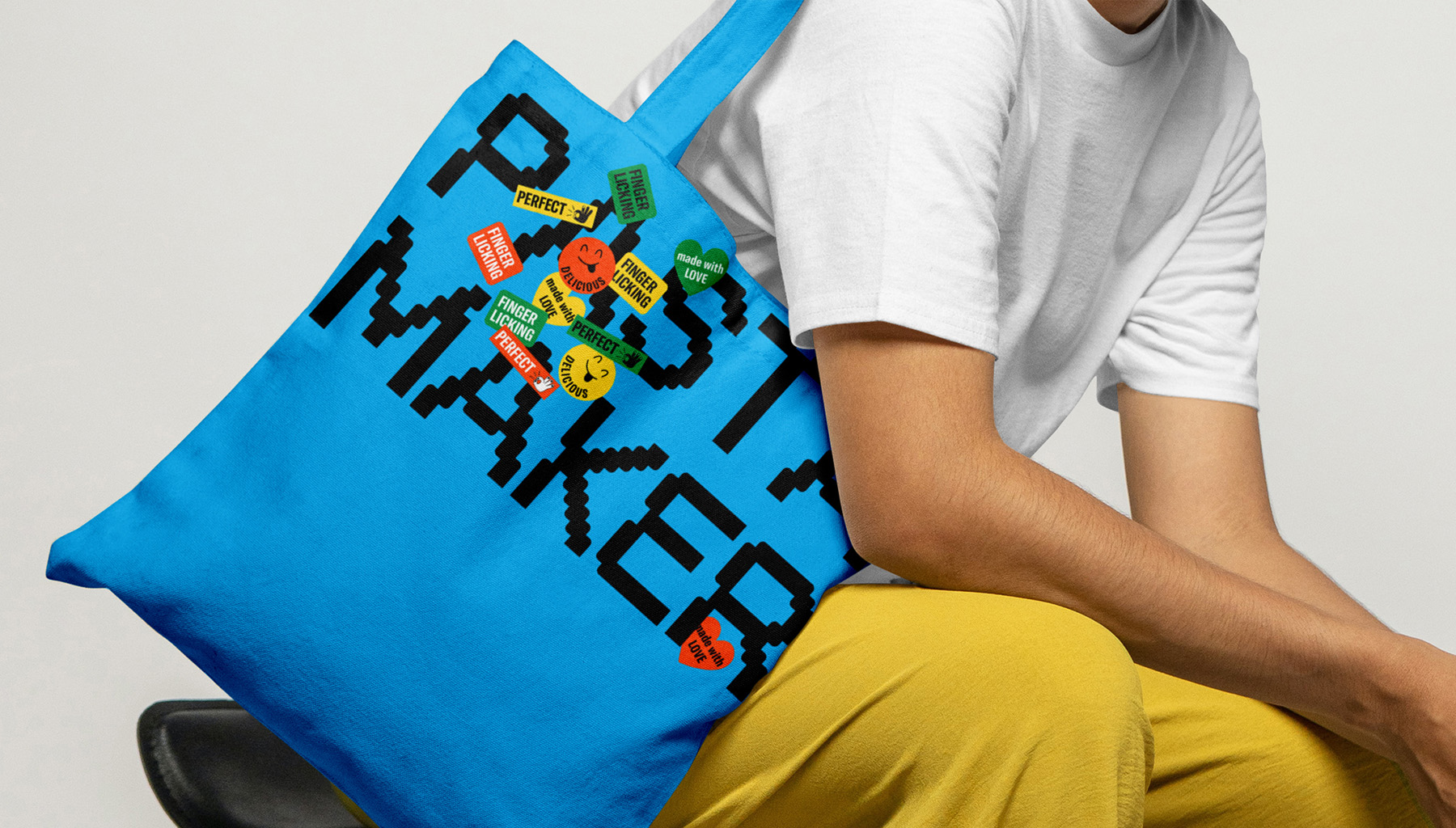 Начиная с названия, PASTA MAKER мгновенно передает суть бренда и целевую аудиторию. Специальный шрифт, созданный для логотипа, придает ему индивидуальность благодаря деталям, напоминающим пасту, что делает его отличительным и мгновенно узнаваемым. Наклейки добавляют динамики и узнаваемости бренда, отражая индивидуальность и отменный вкус клиента.