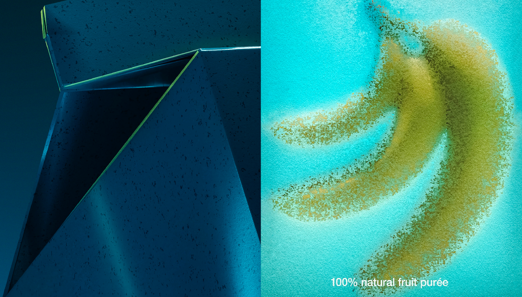 В основе дизайна лежит метафора замороженного стекла, за которым находятся свежие и яркие фрукты, которые можно в любой момент добавить в свой напиток, превратив его в настоящий профессиональный коктейль