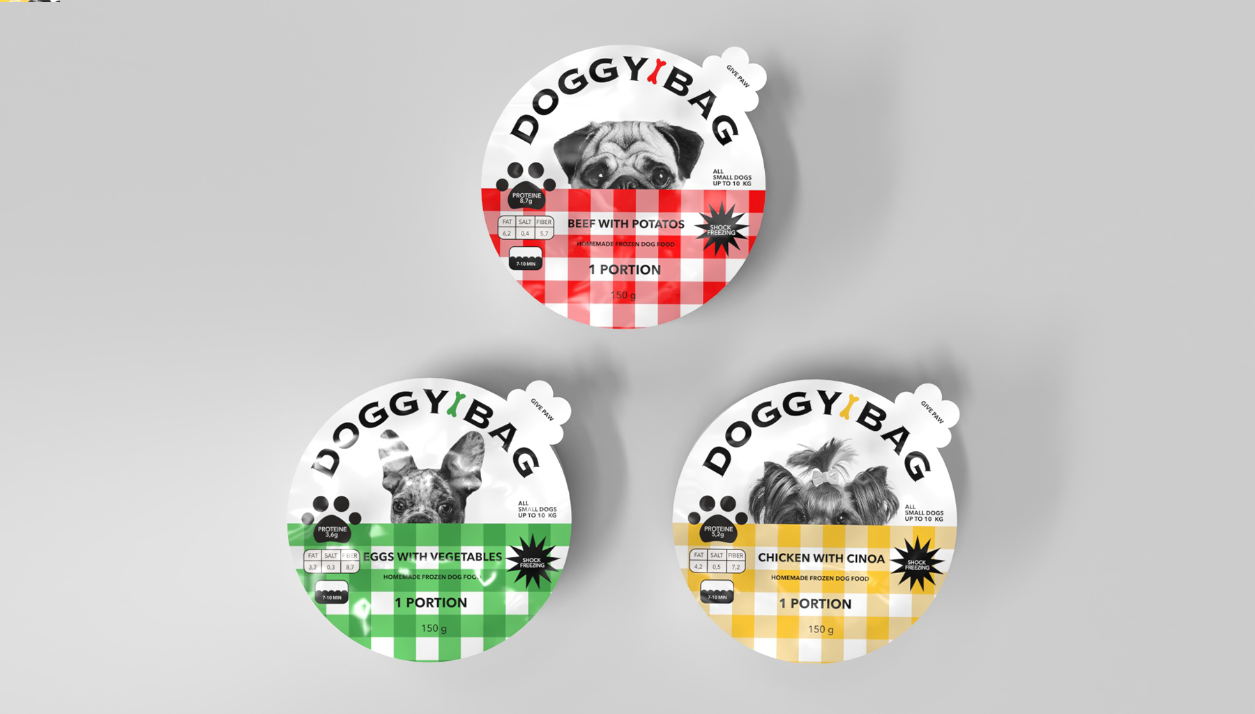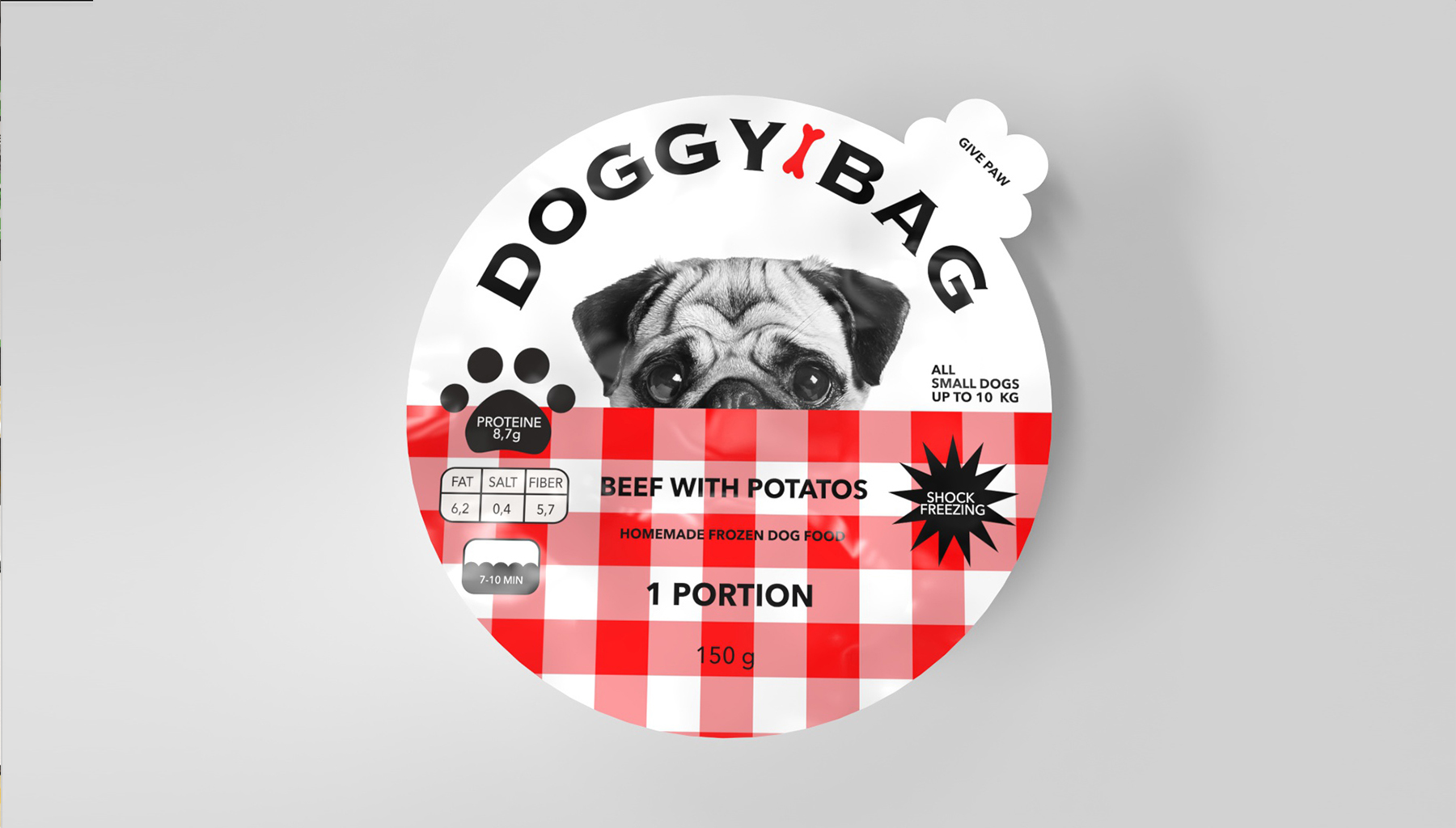 DOGGY BAG – замороженные полуфабрикаты приготовленные из свежих продуктов для собак мелких пород, подвергнутые шоковой заморозке для максимального сохранения полезных веществ. Продукт упакован в перерабатываемый пластик и не вредит экологии.