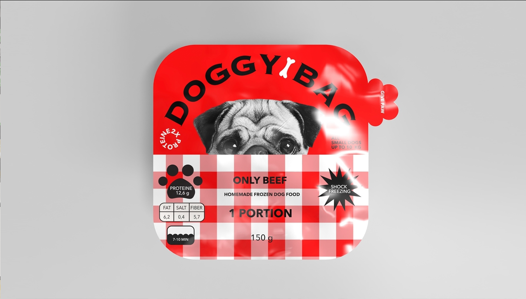 Форм-фактором упаковки стала коробка, напоминающая контейнер для еды с удобным язычком в форме собачьей лапки. Это отразилось и в названии проекта – английской идиоме DOGGY BAG.