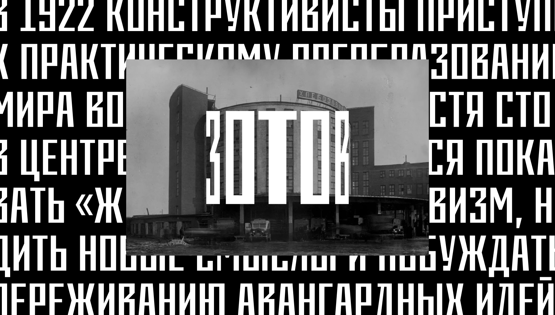 Центр «Зотов» — новое культурное пространство, расположившееся в здании бывшего хлебозавода №5 имени Зотова в Москве. Он посвящен изучению и развитию конструктивизма, уникального явления XX века из России. Вдохновившись выразительной формой архитектуры хлебозавода, мы разработали логотип, напоминающий цилиндрический фасад, а на его основе создали Zotov — акцидентный шрифт в конструктивистском стиле.
